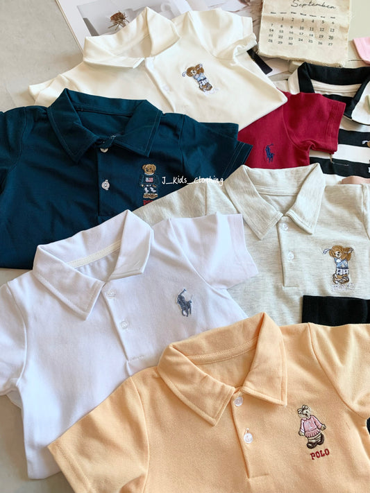 J445(2) 翻领刺绣熊&拉夫短袖平爬