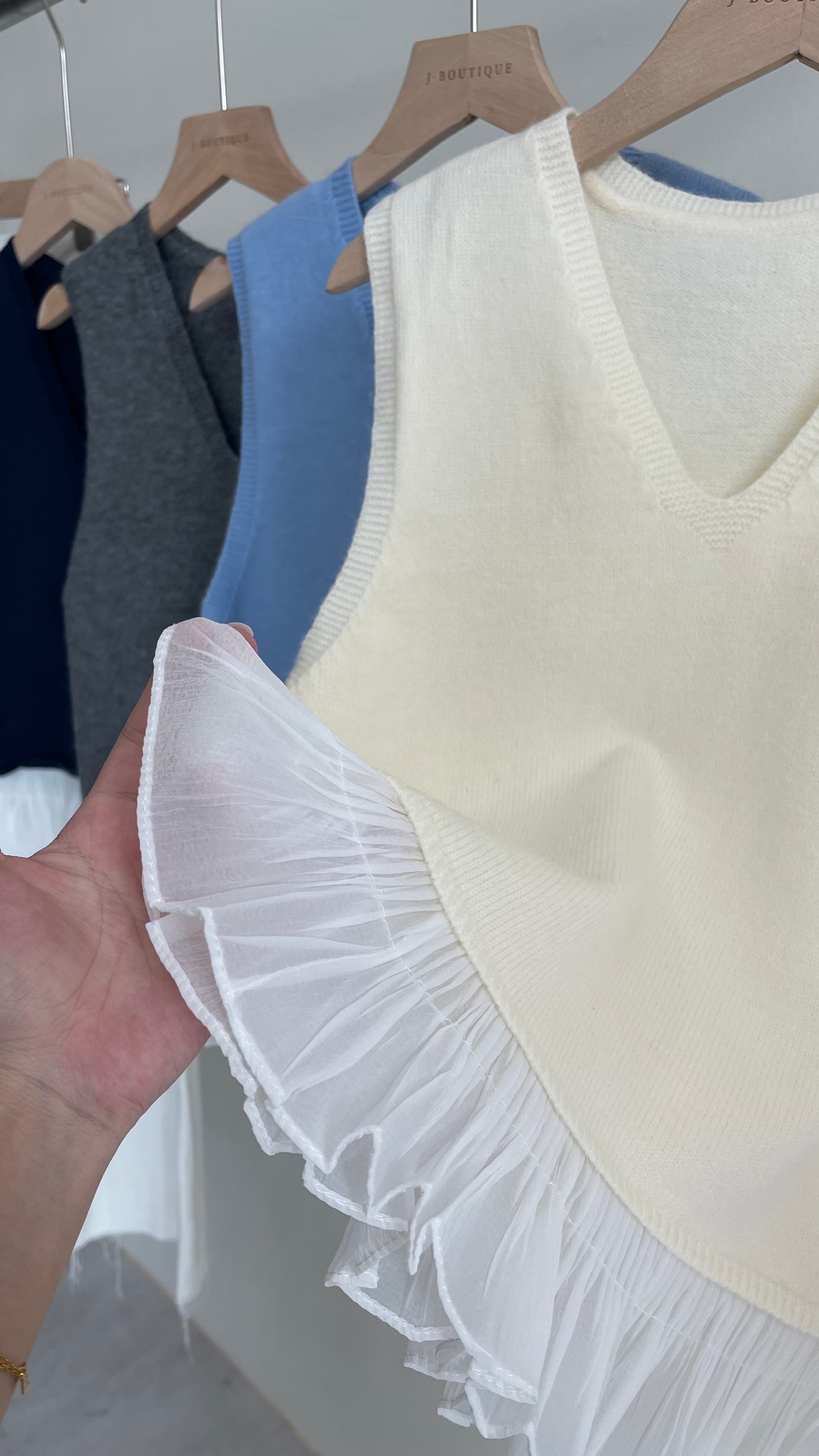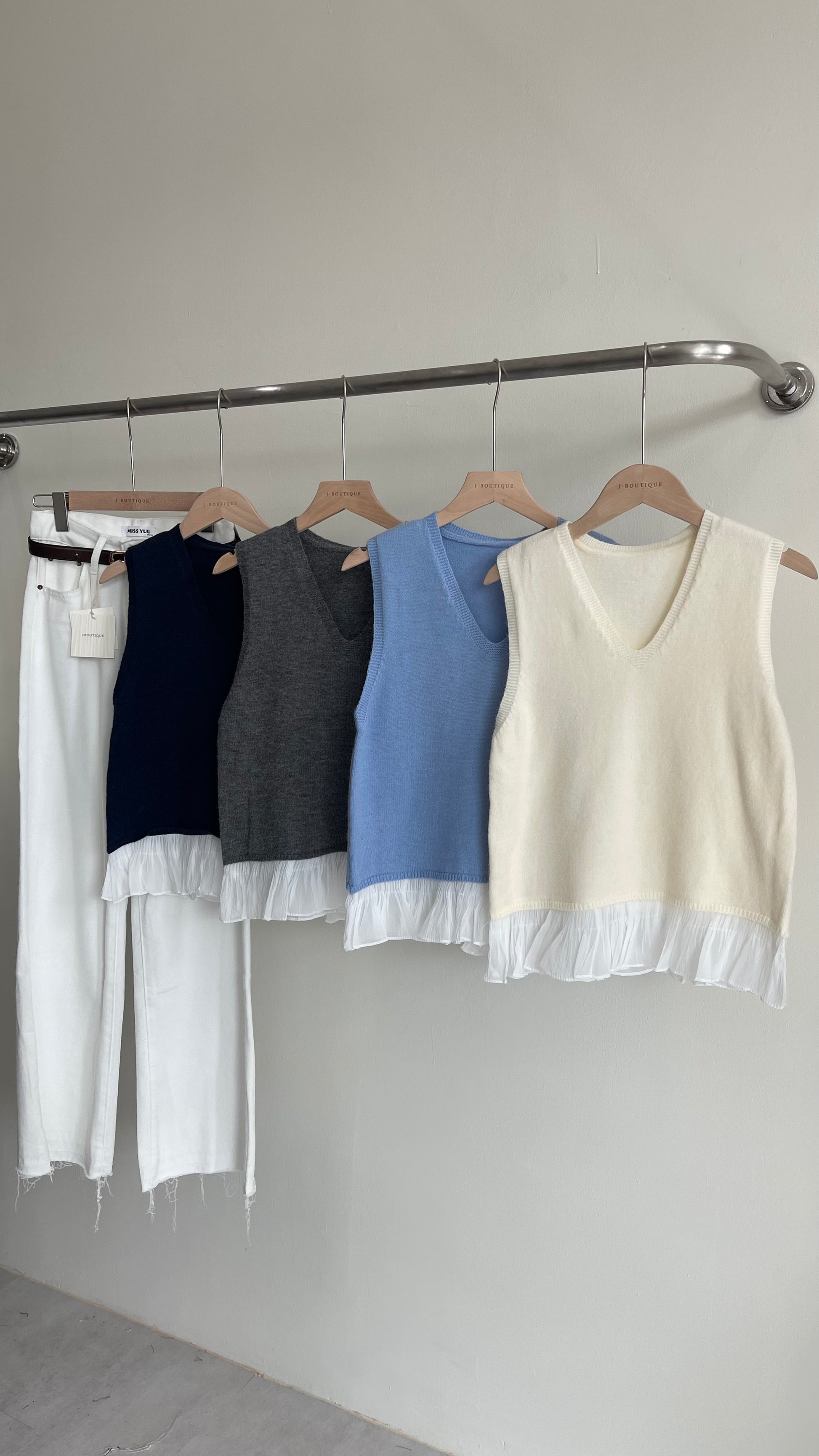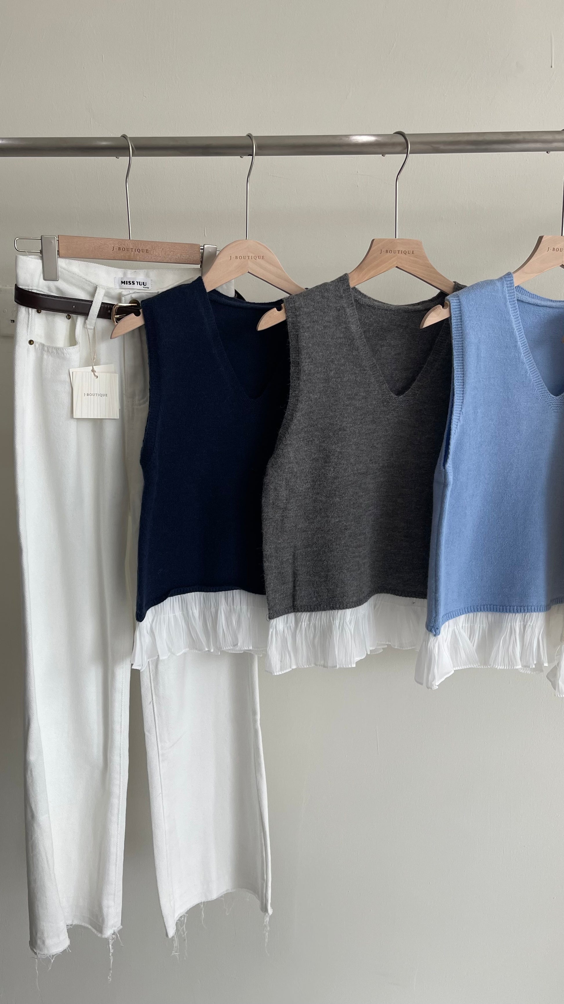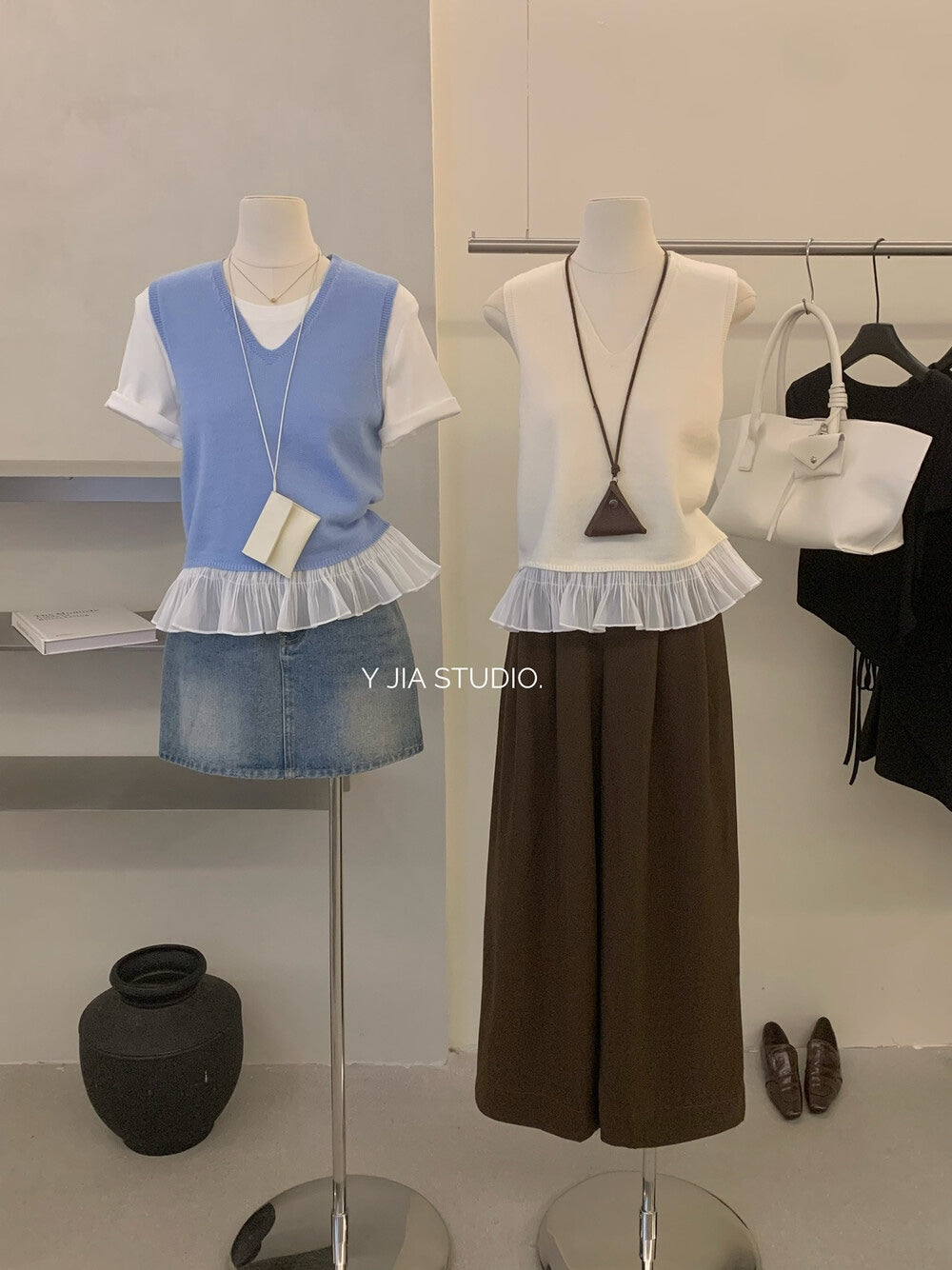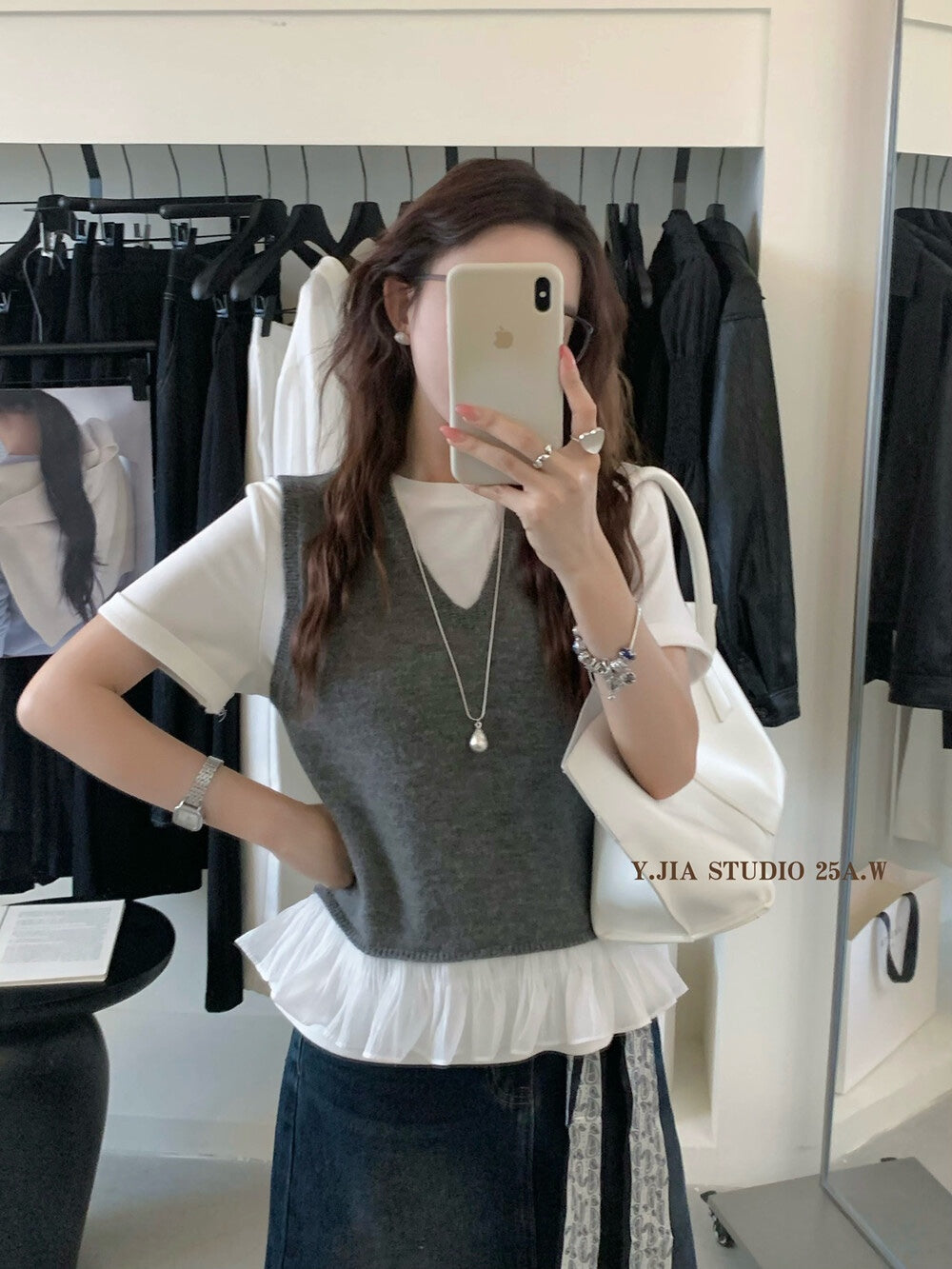 【新品】508-5 层次感假两件蕾丝下摆无袖上衣