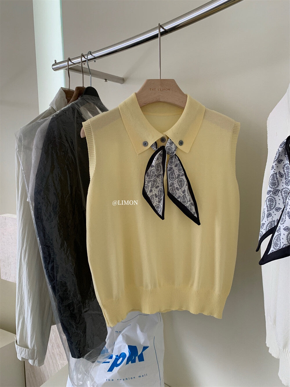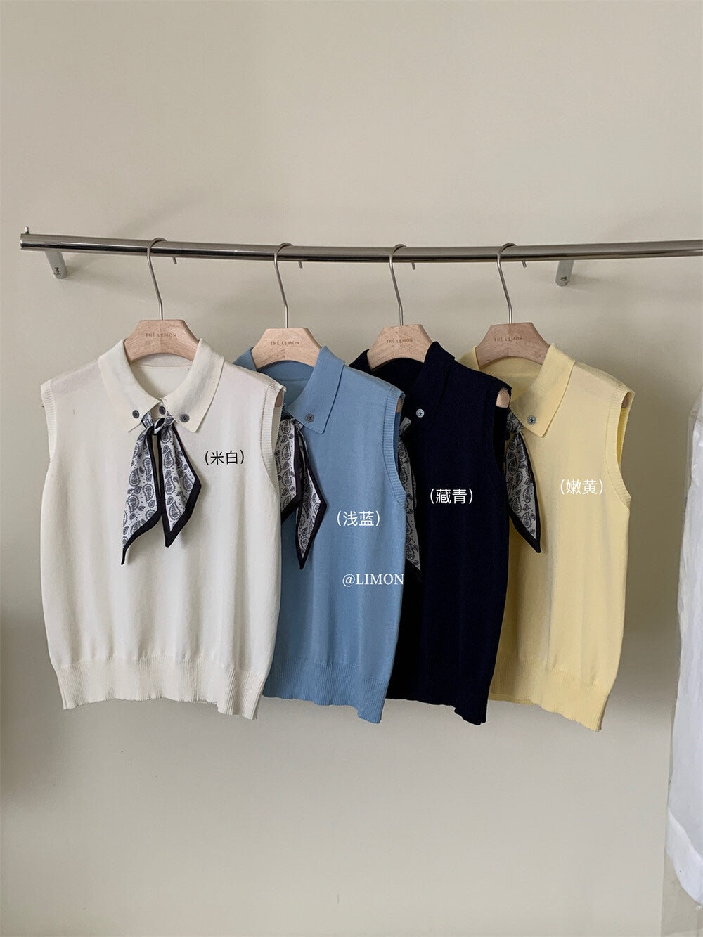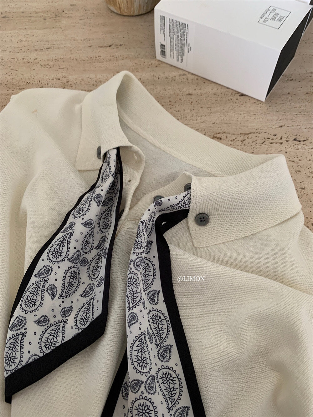 【新品】8228 少女感Polo领仿亚麻针织衫(配丝巾)
