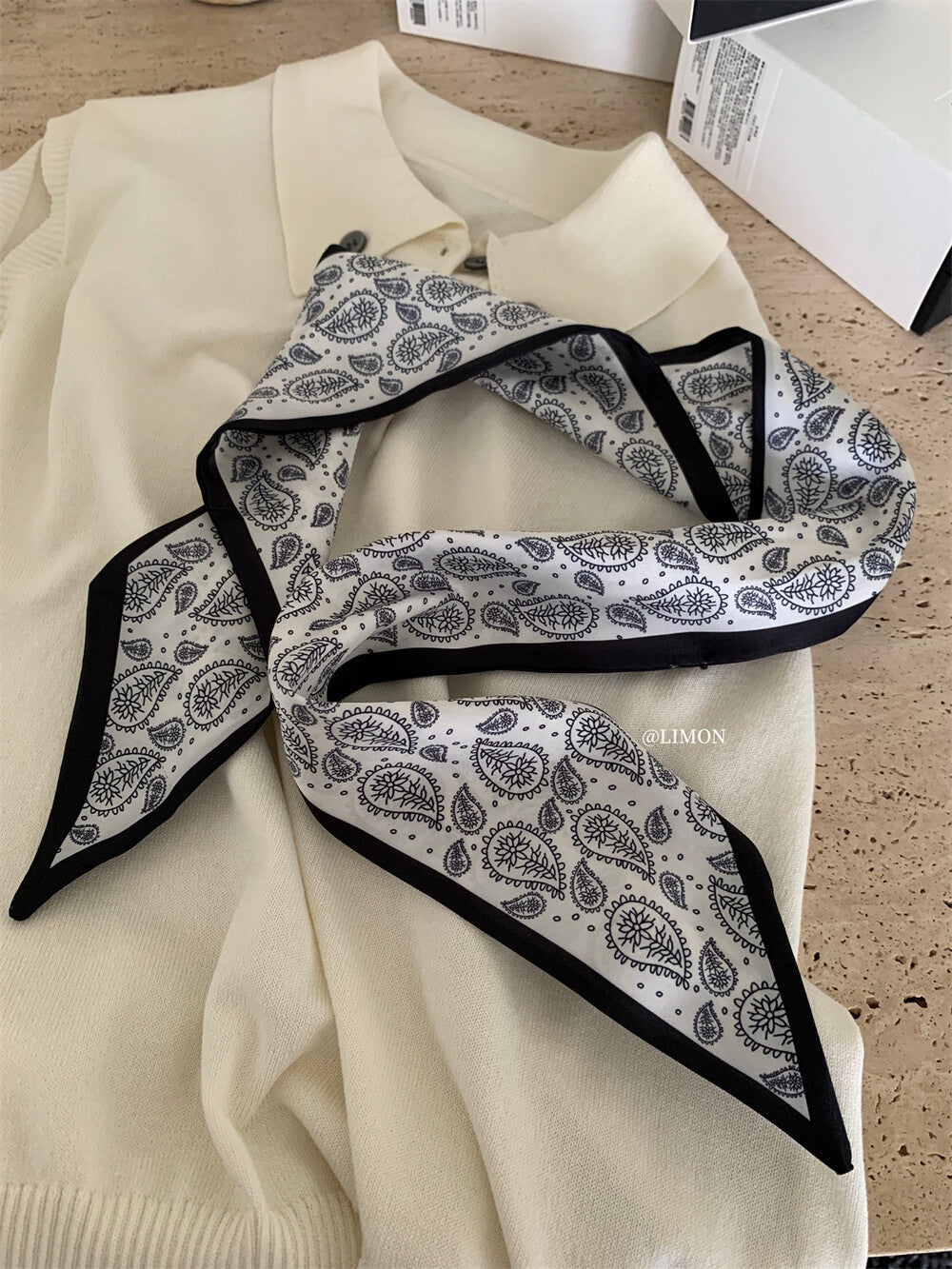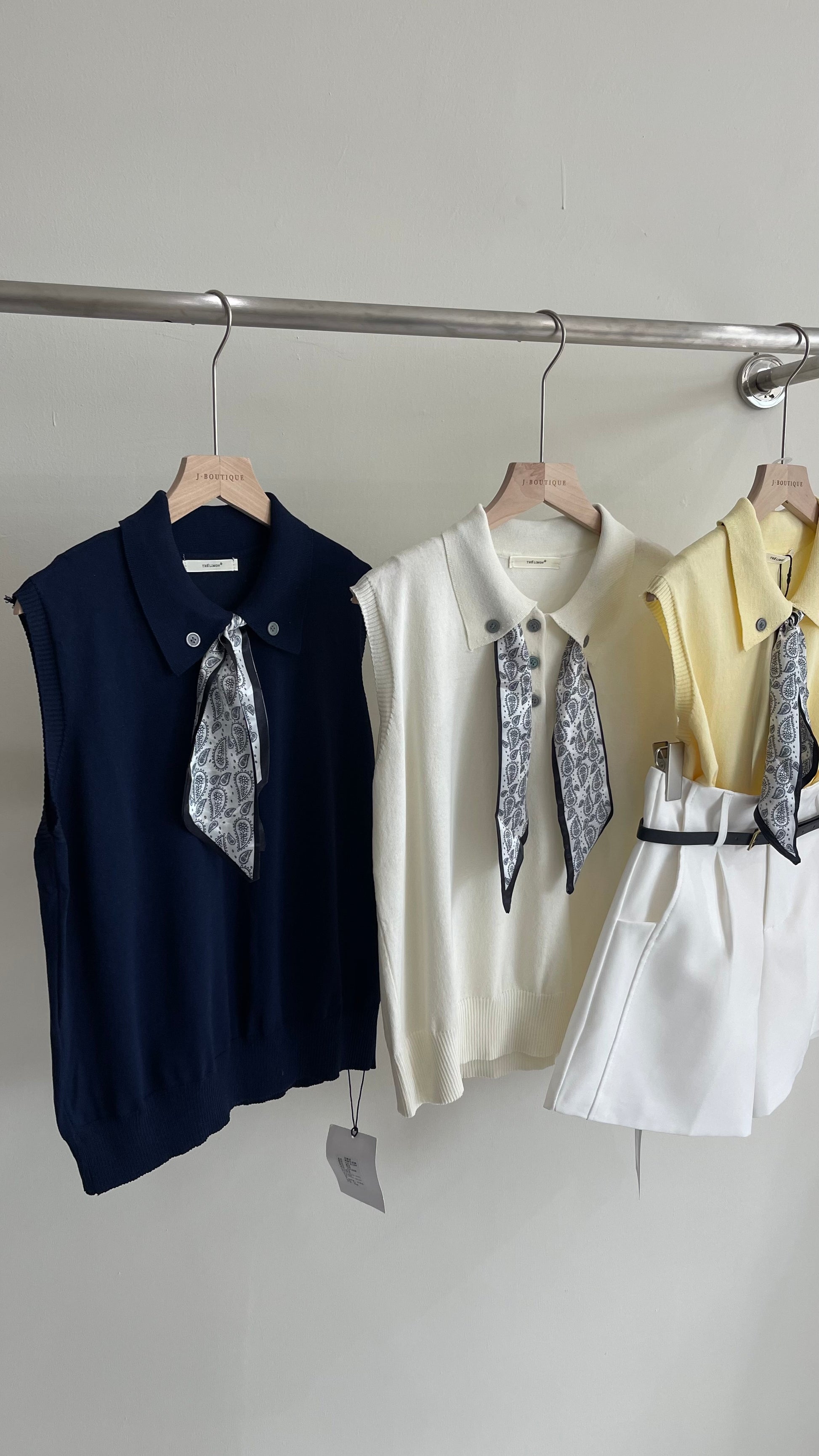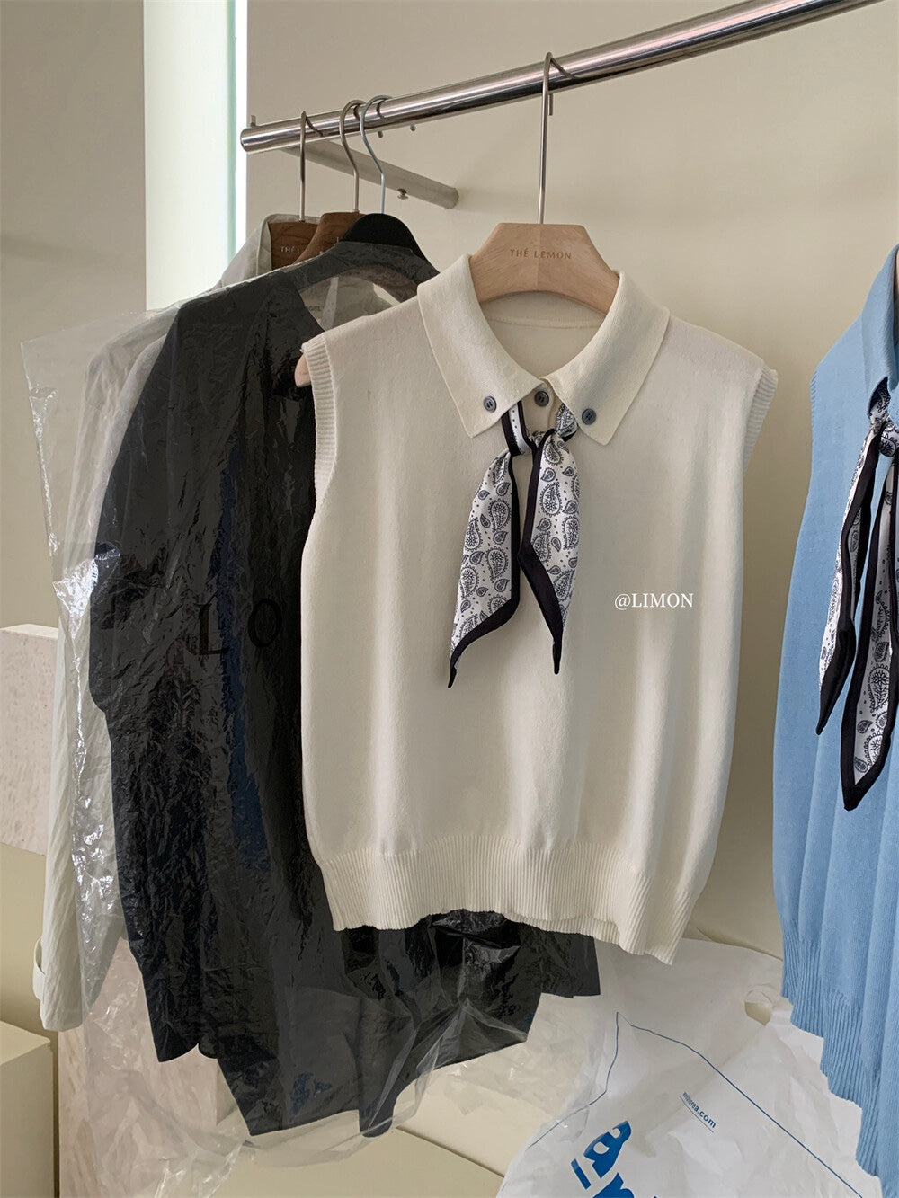 【新品】8228 少女感Polo领仿亚麻针织衫(配丝巾)