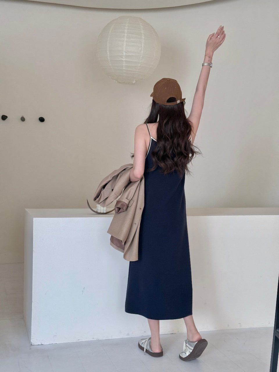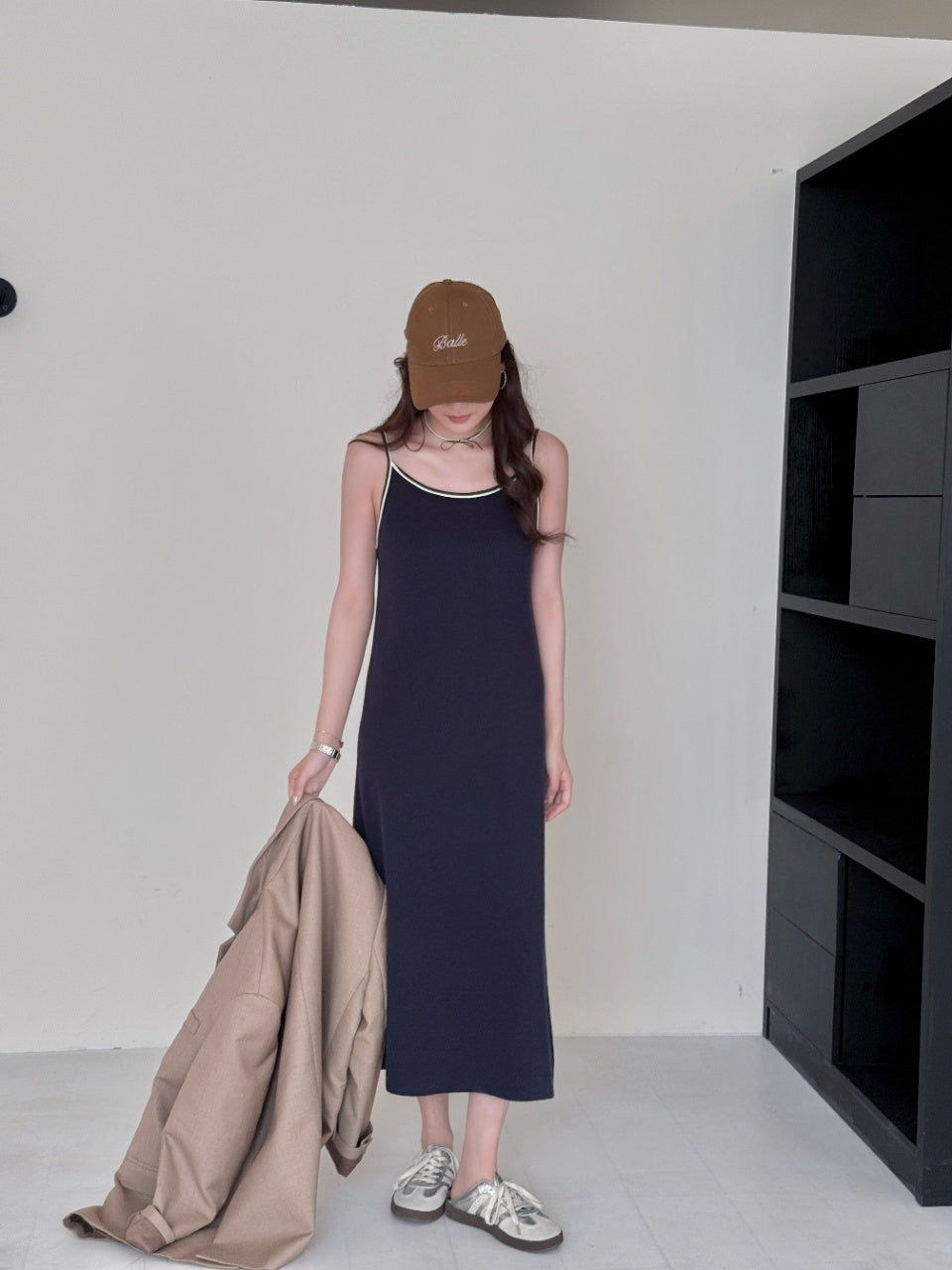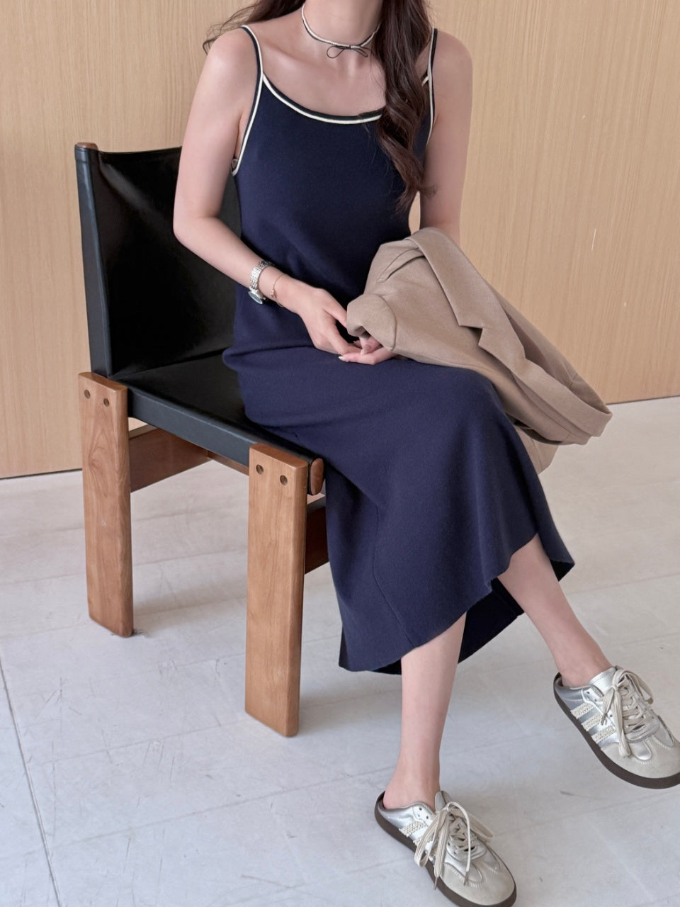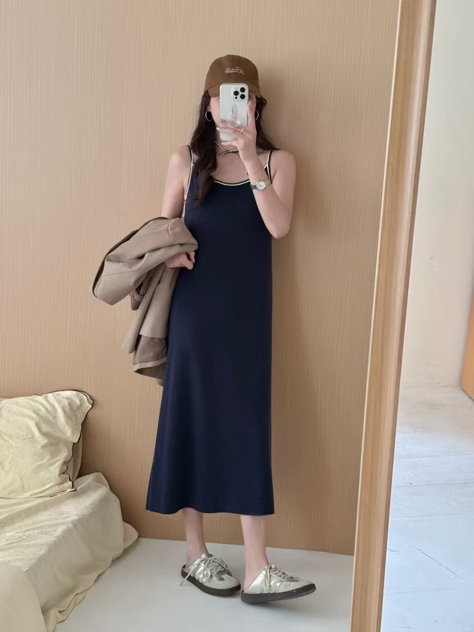 【新品】8806 高品质韩系针织撞色吊带连衣裙