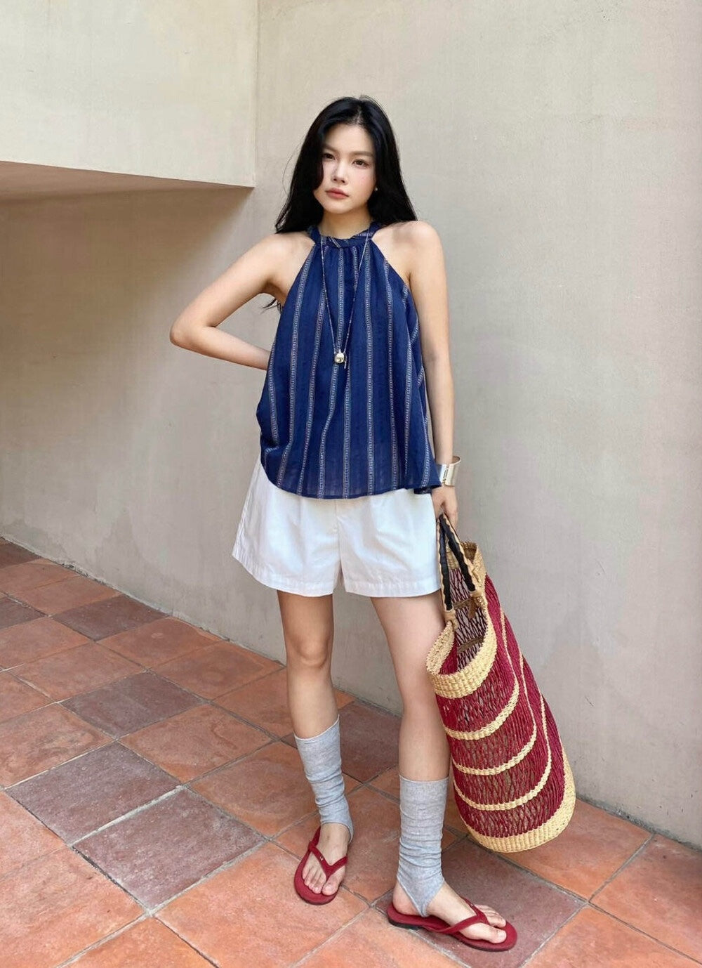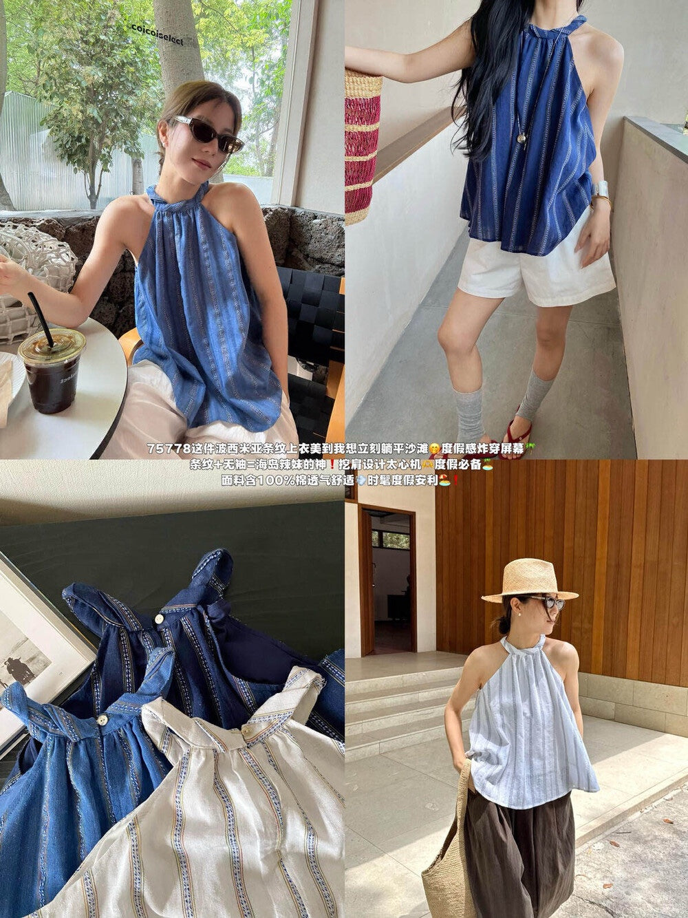 【新品】AE250705 米亚风复古挂脖无袖上衣