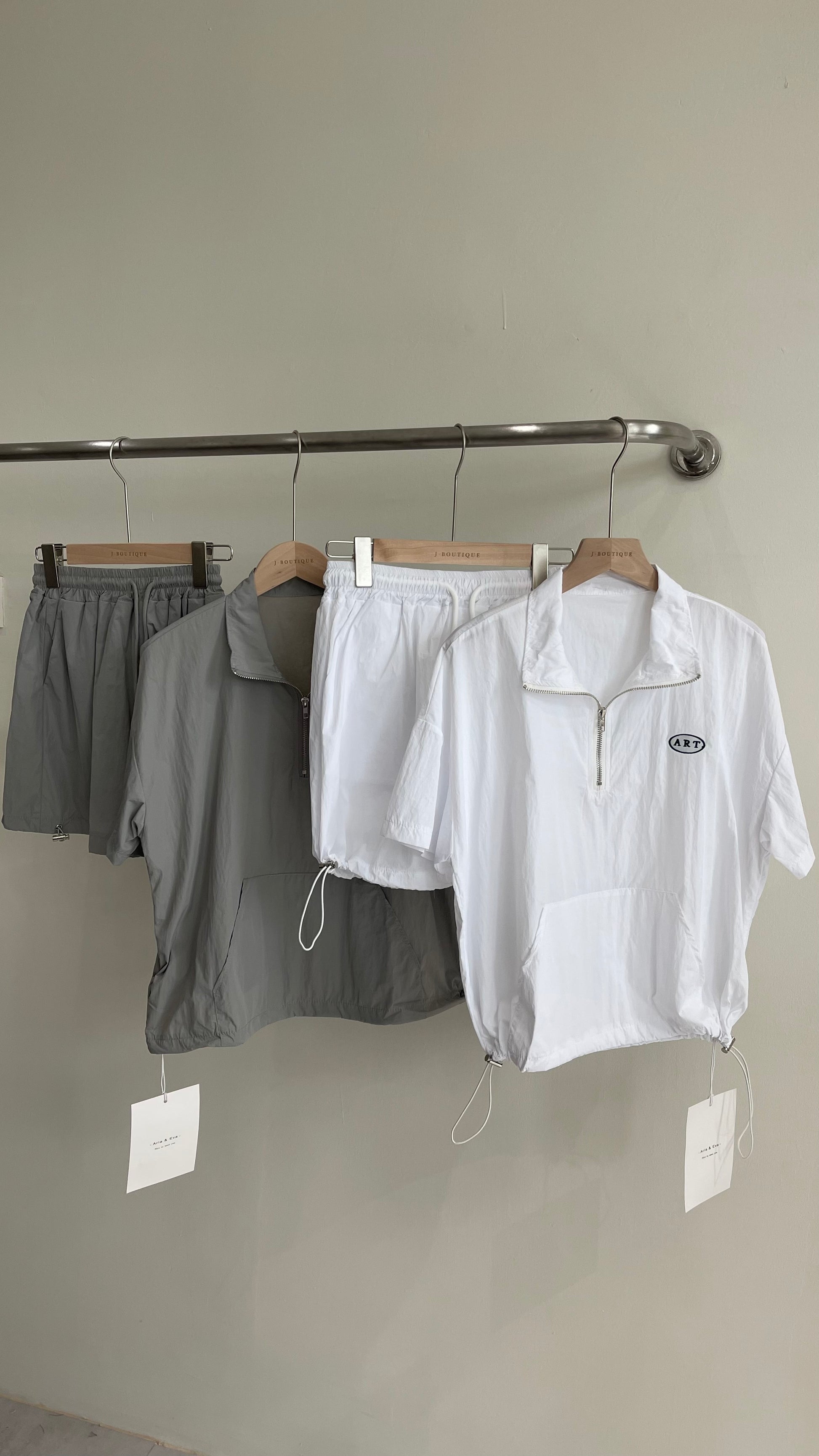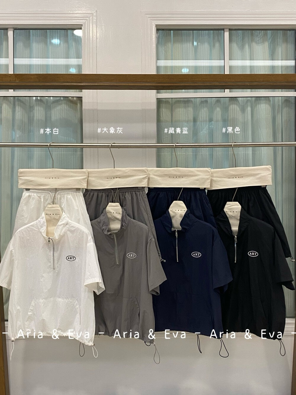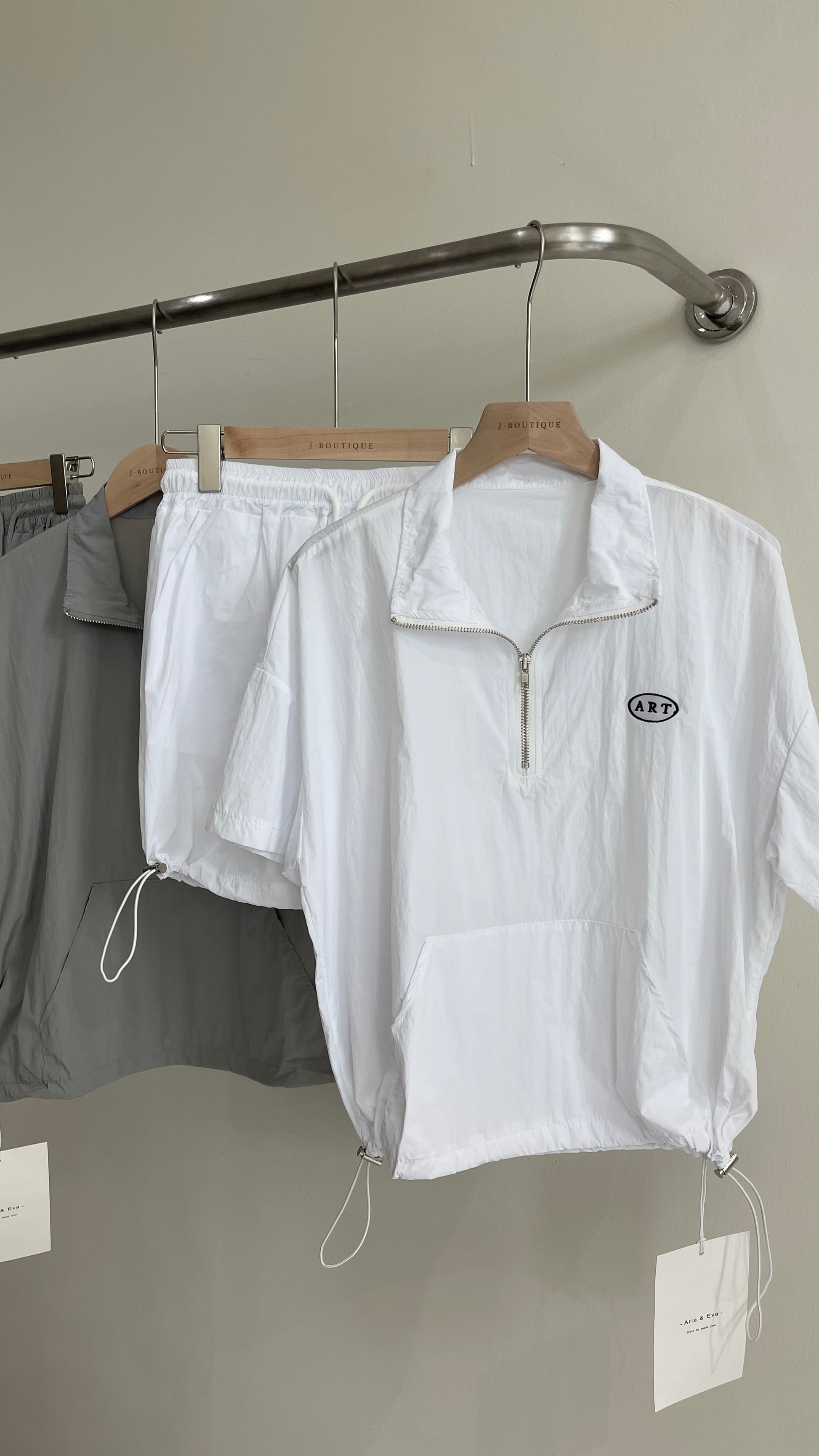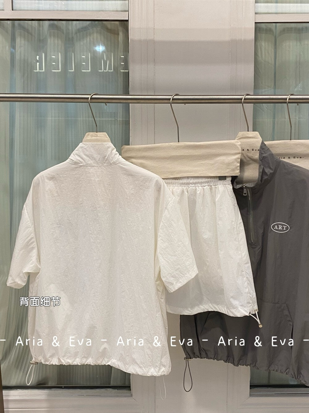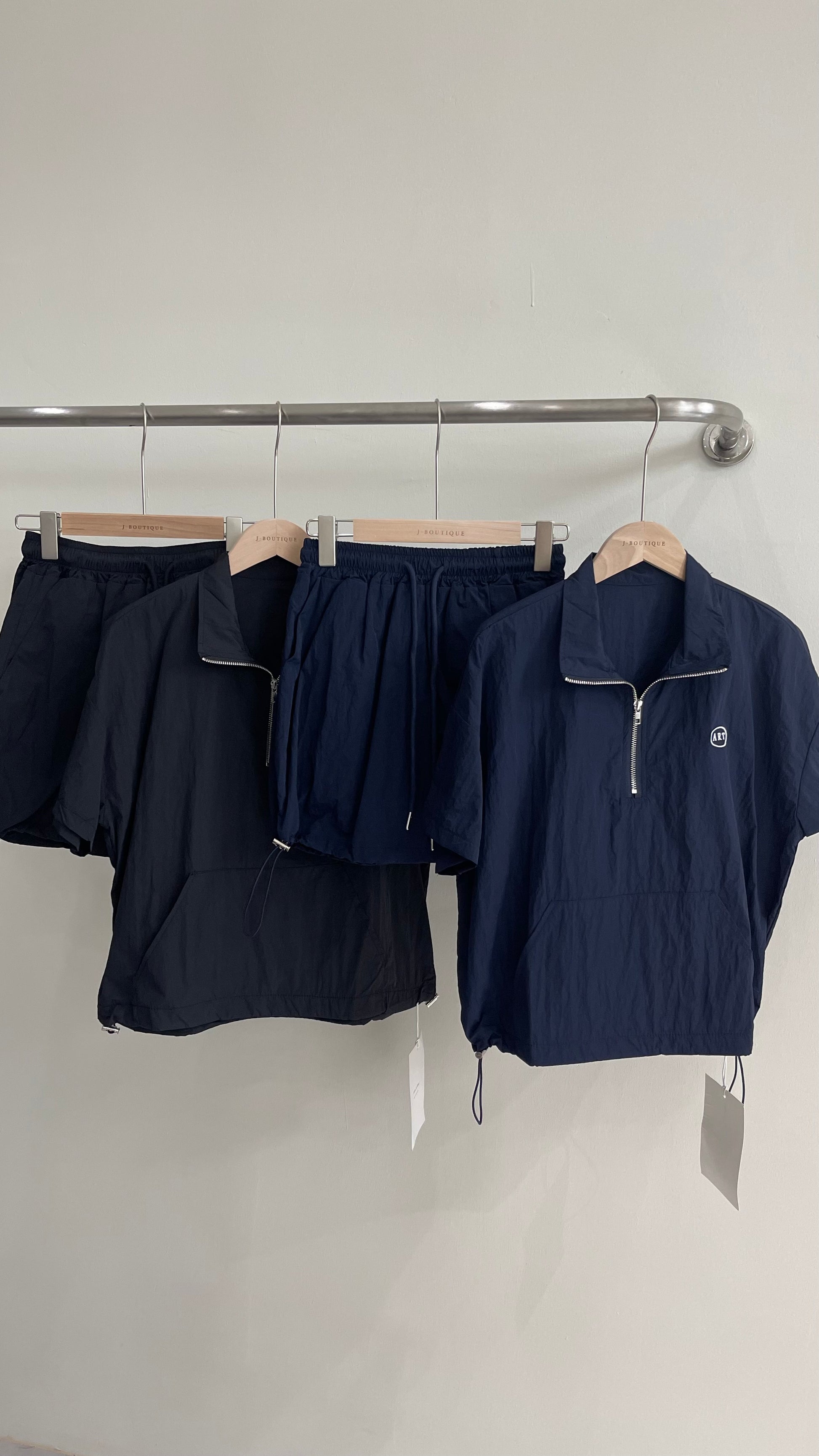 【新品】AE250758 韩系2件套 半拉链短袖上衣+抽绳半身裙