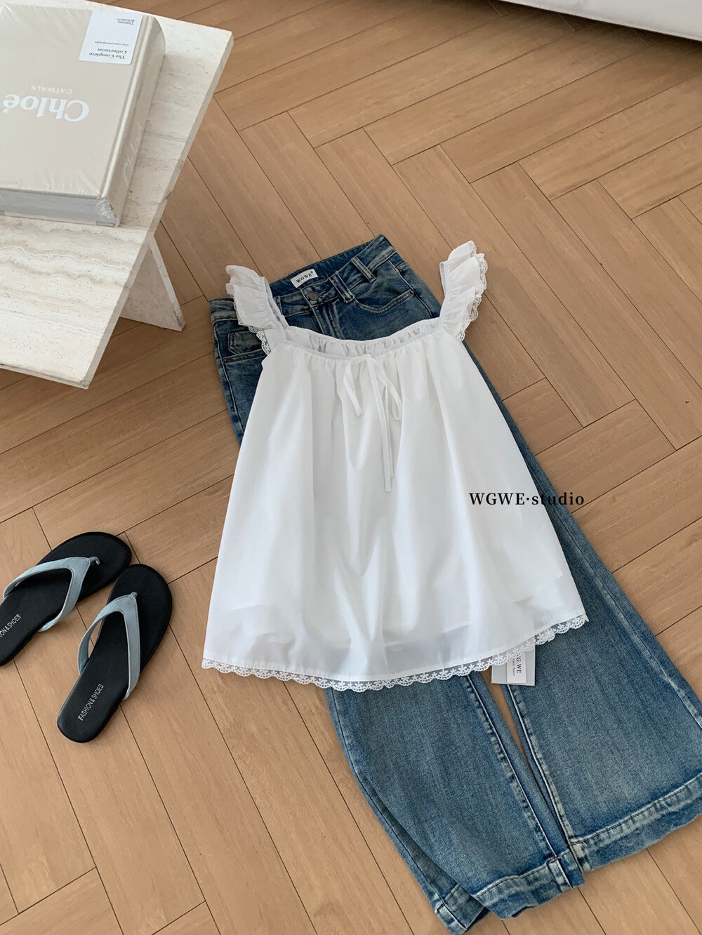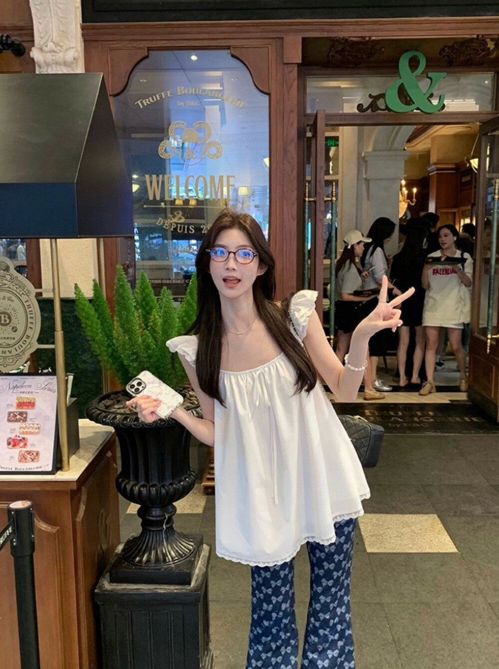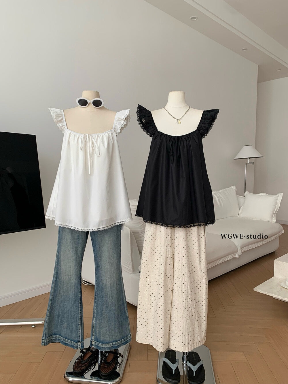 【新品】W6394 高级感小飞袖蕾丝边上衣