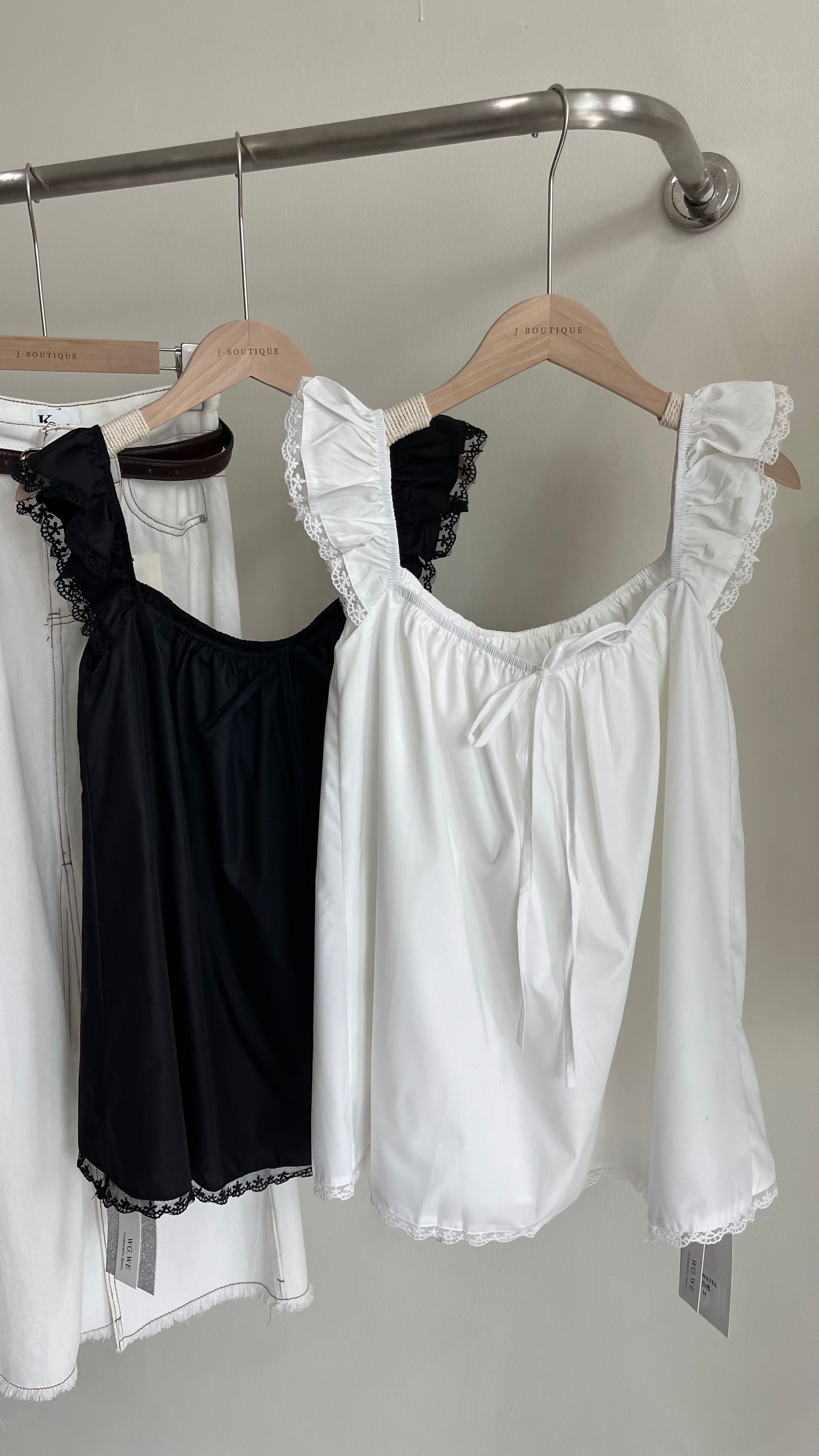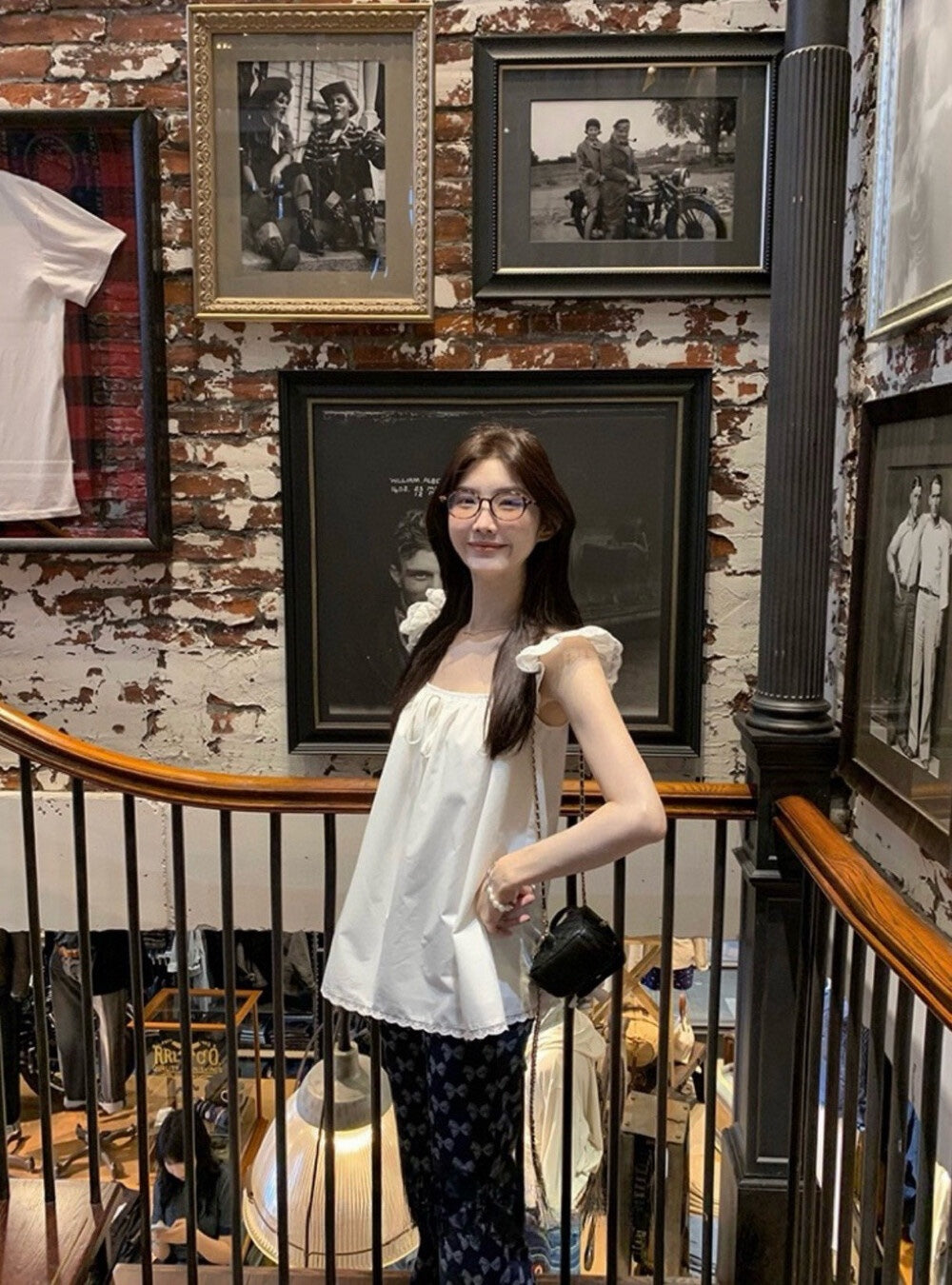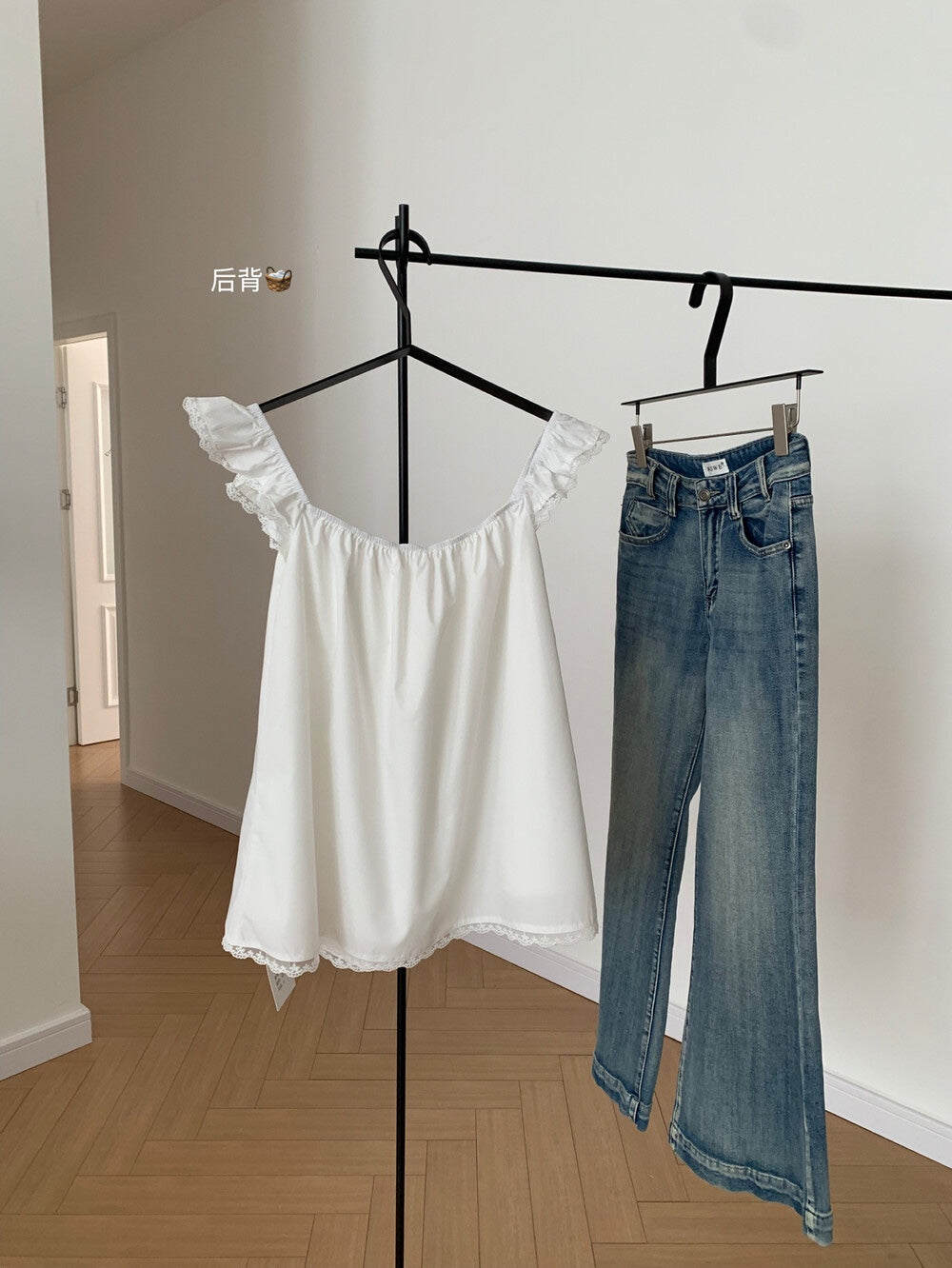 【新品】W6394 高级感小飞袖蕾丝边上衣
