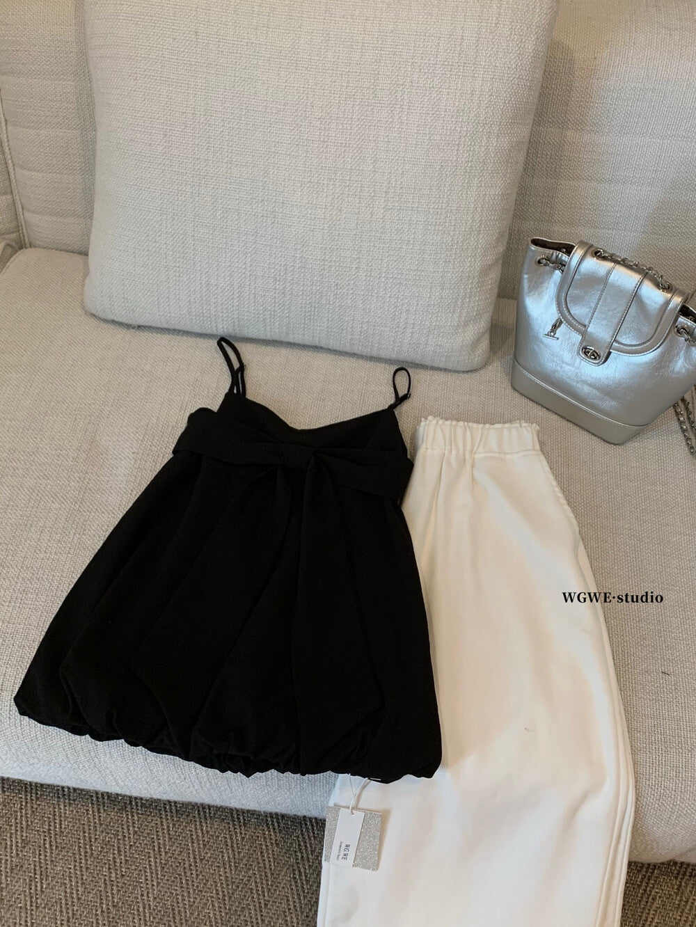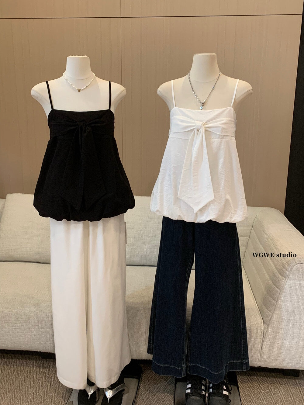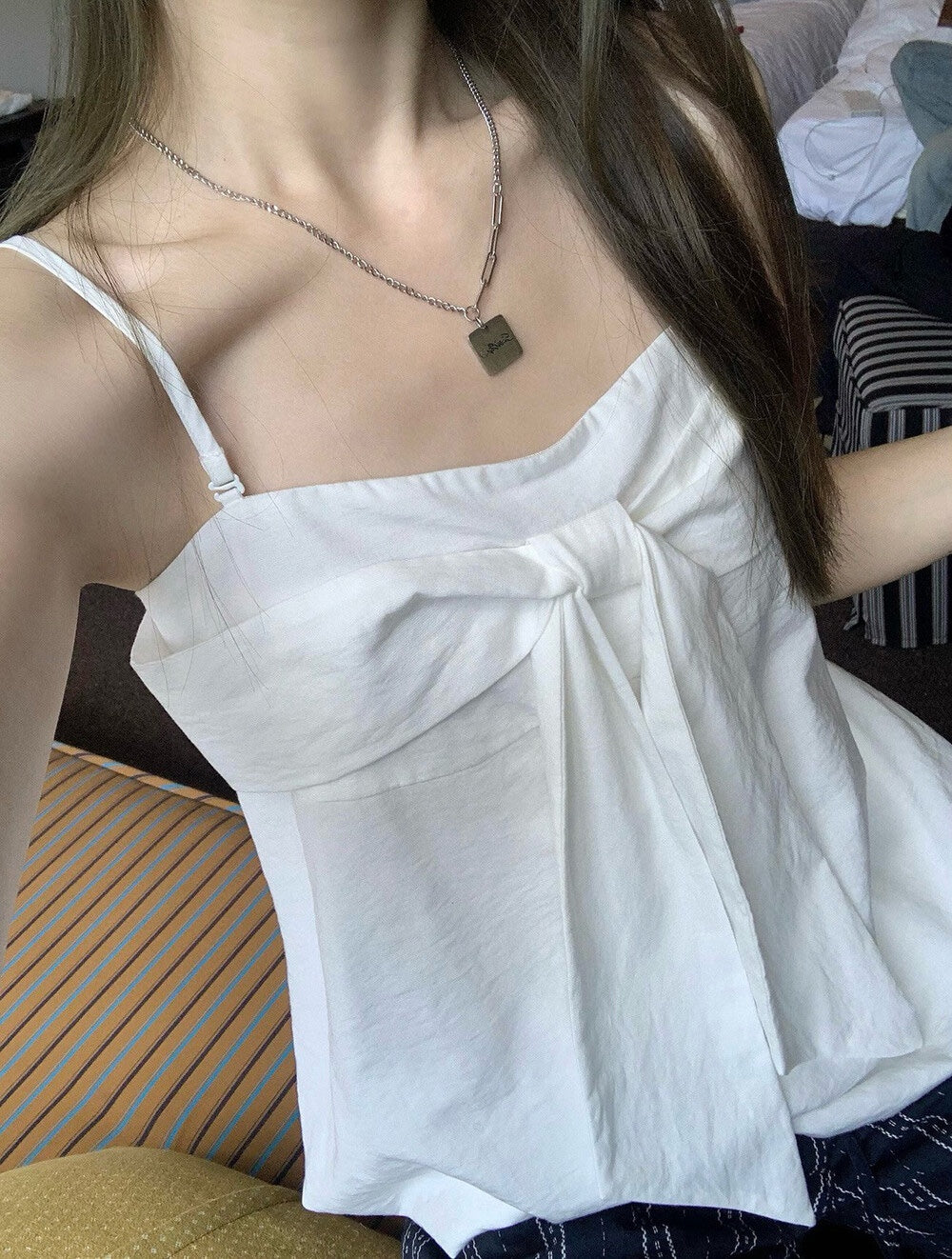 【新品】W6623 蝴蝶结设计 吊带无袖上衣