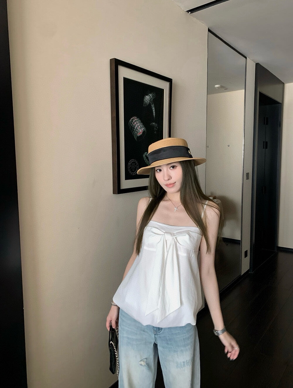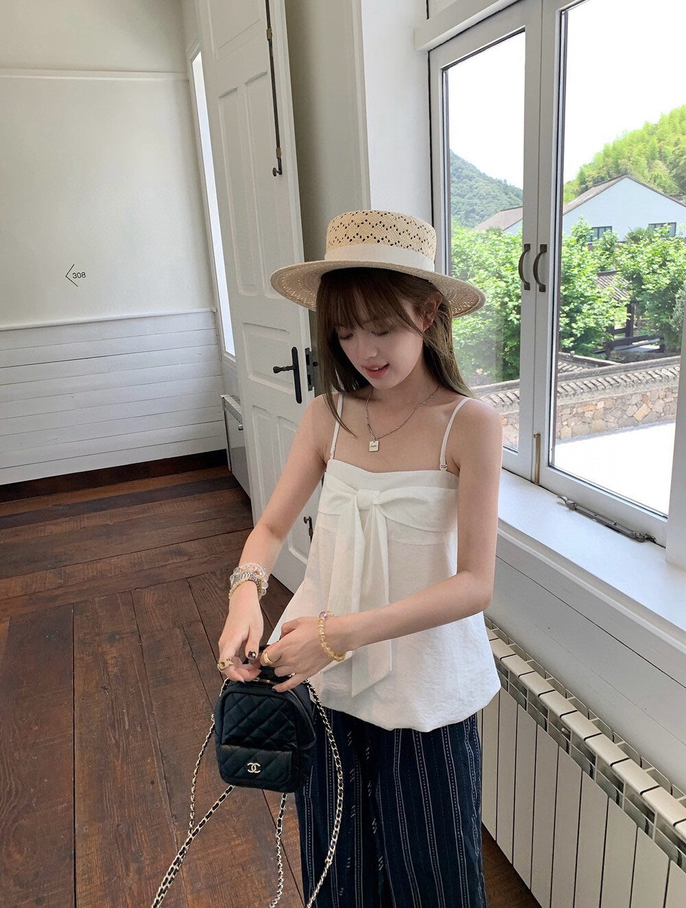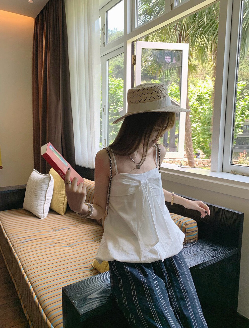 【新品】W6623 蝴蝶结设计 吊带无袖上衣