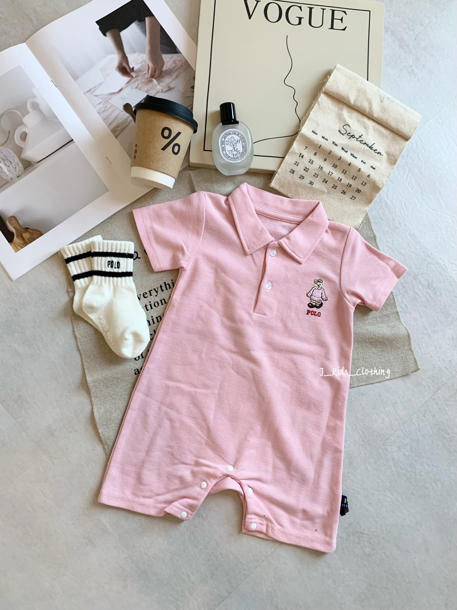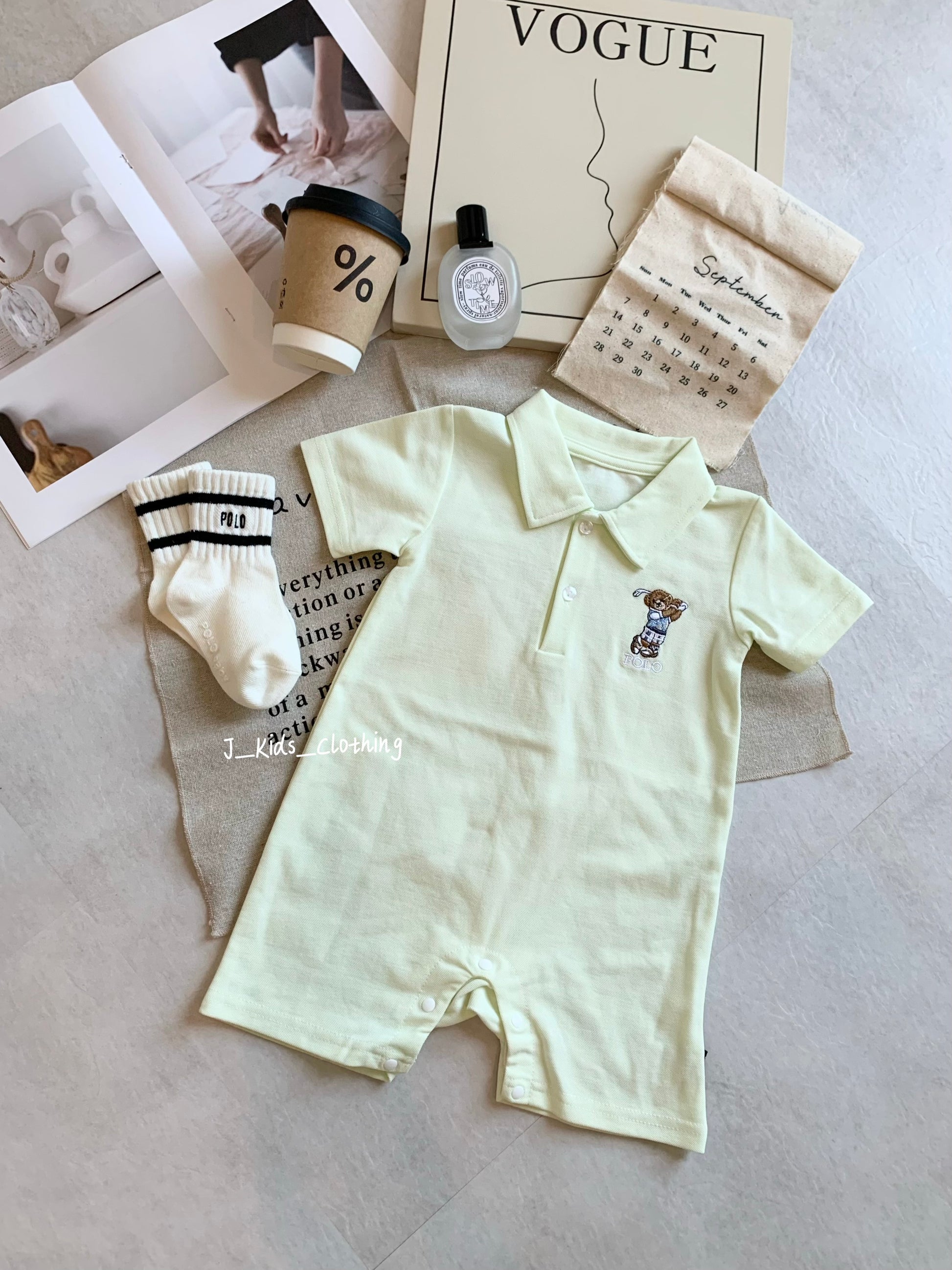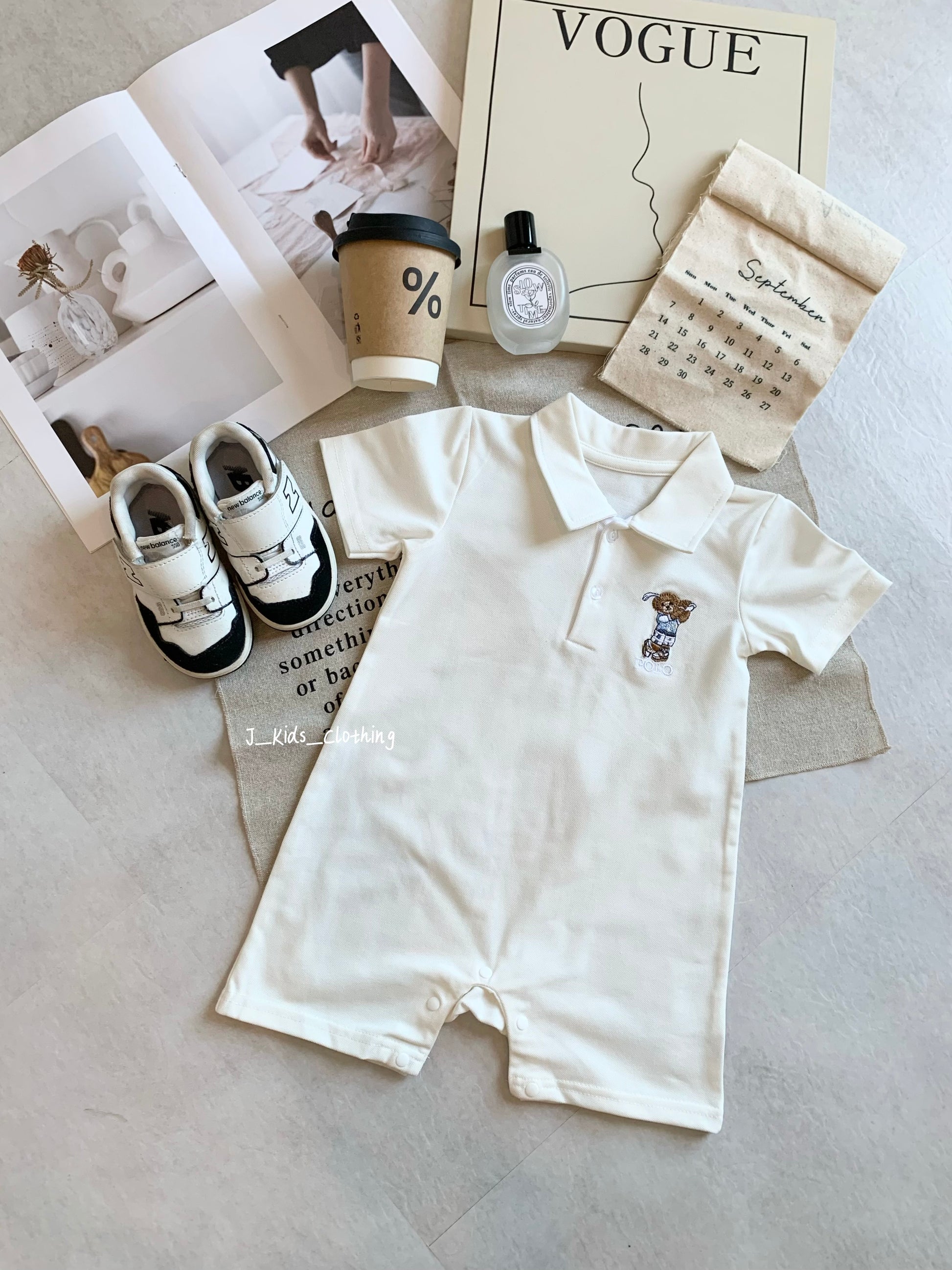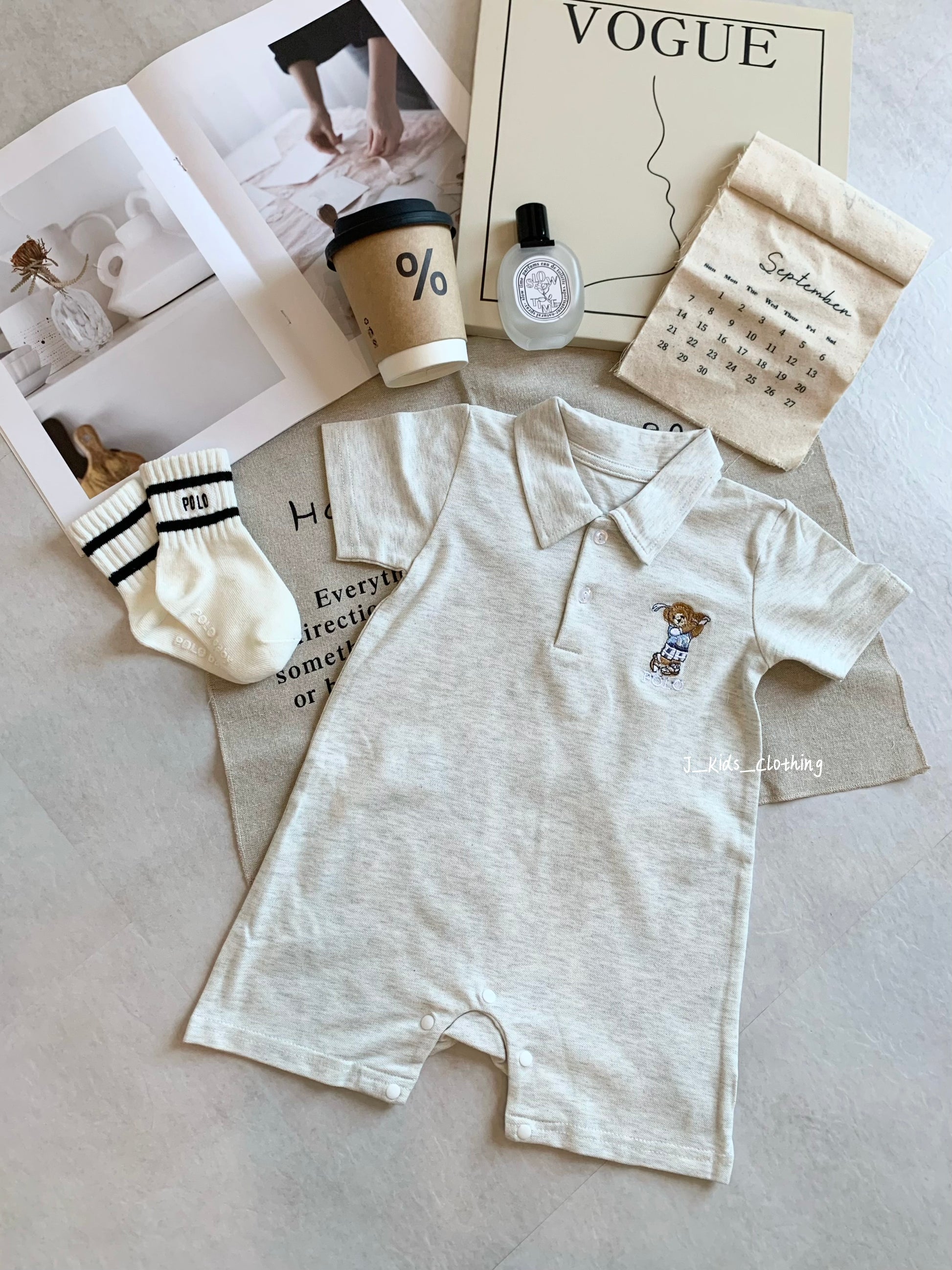 J445(2) 翻领刺绣熊&拉夫短袖平爬