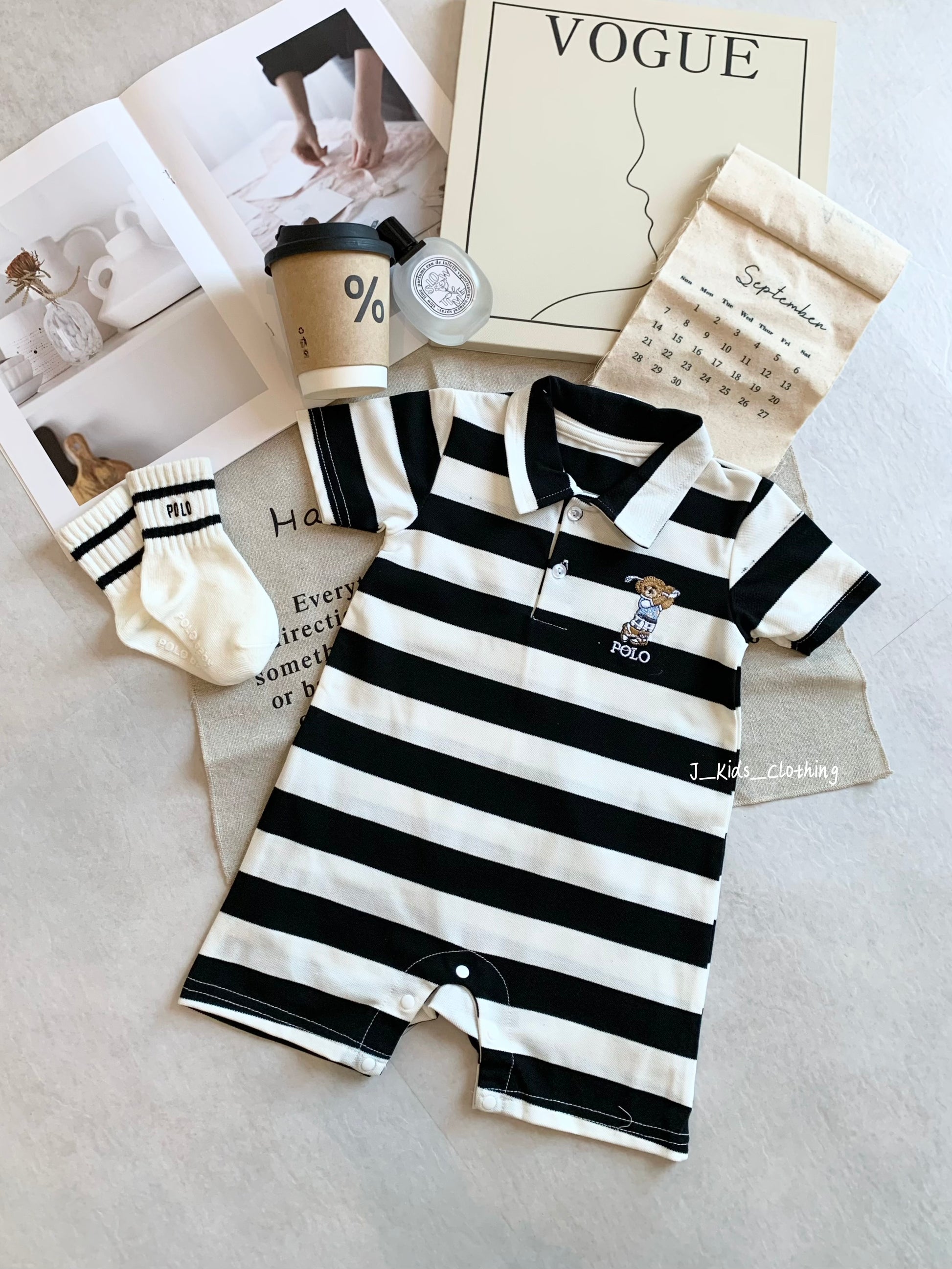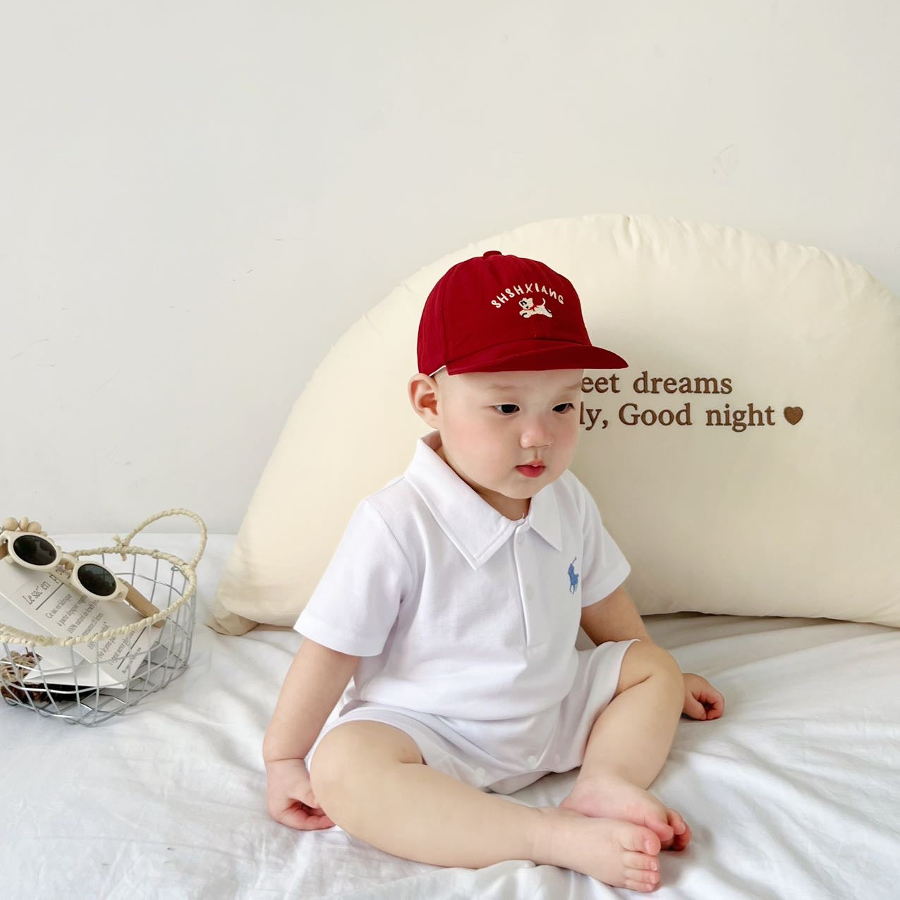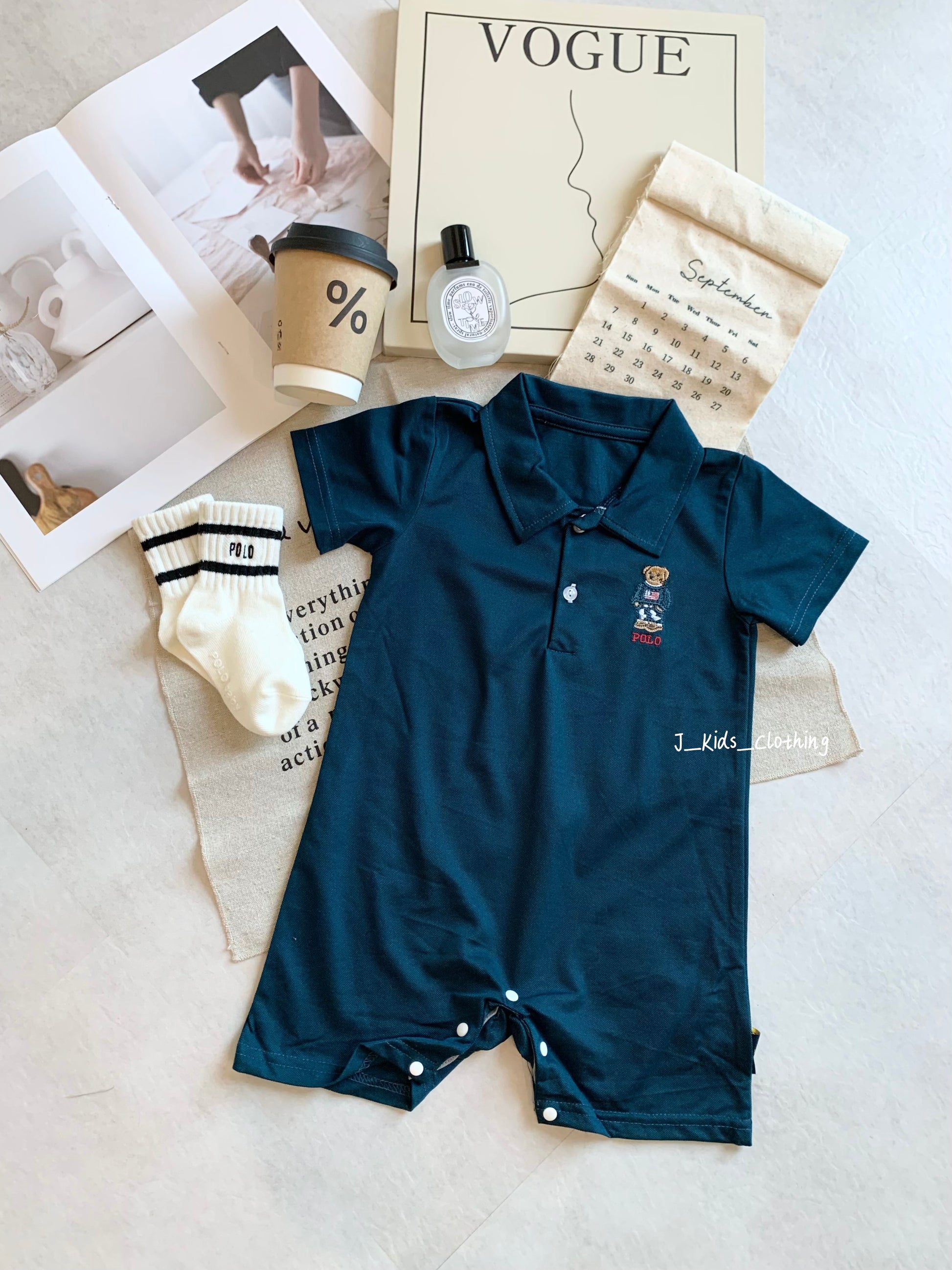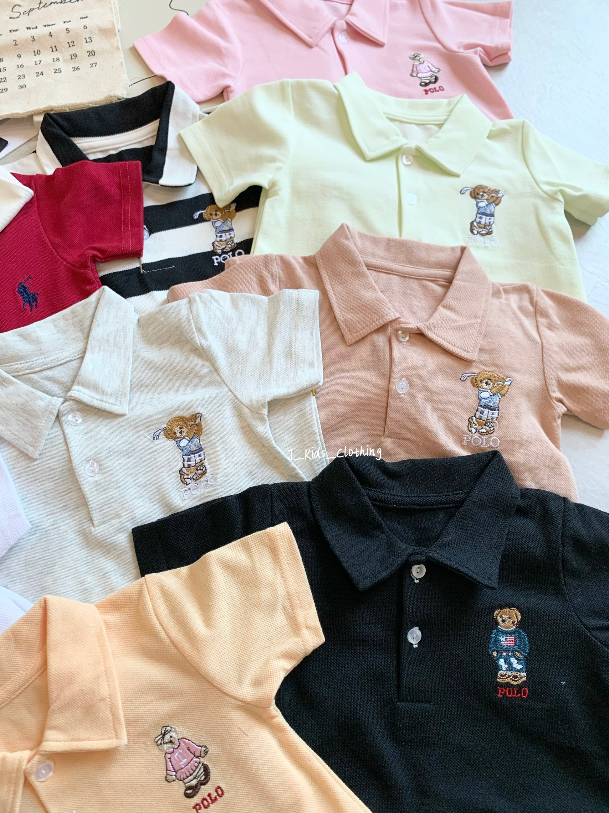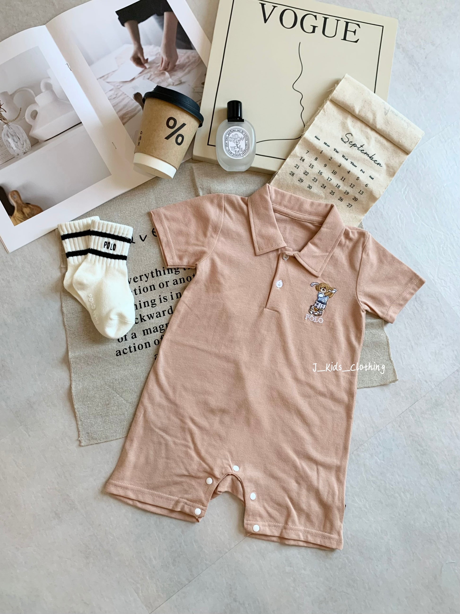 J445(2) 翻领刺绣熊&拉夫短袖平爬
