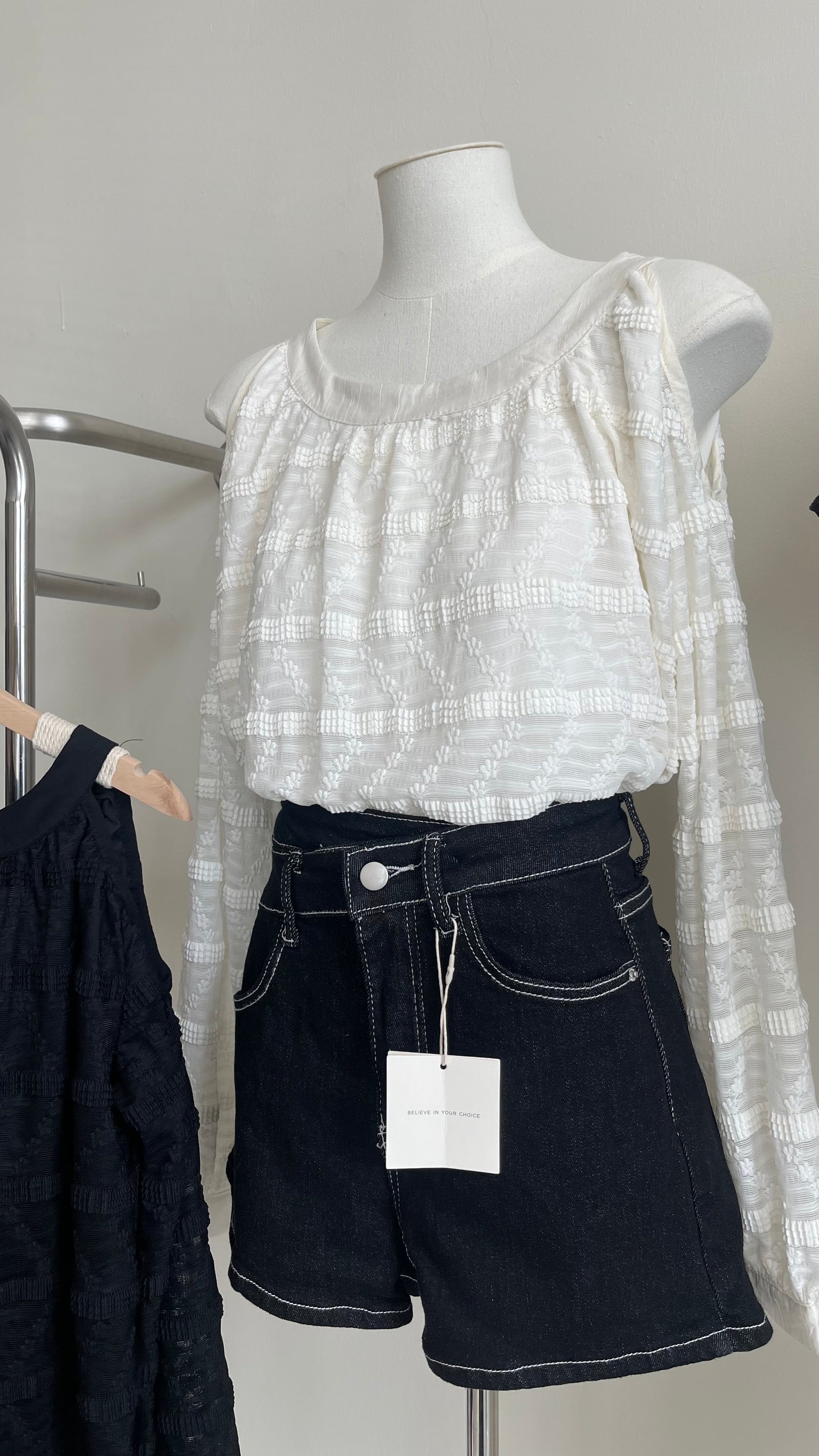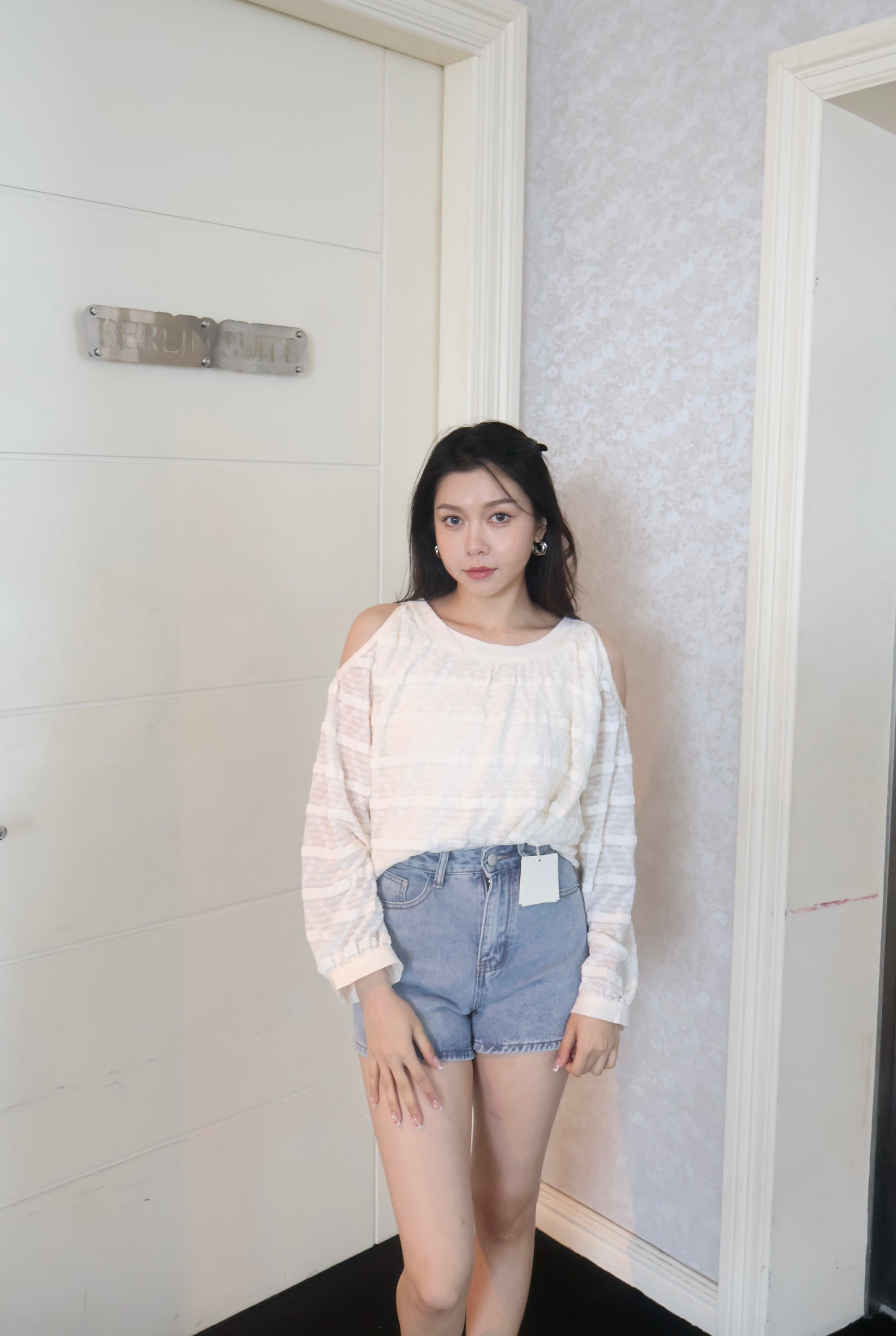 【现货】7037 韩系圆领露肩长袖上衣