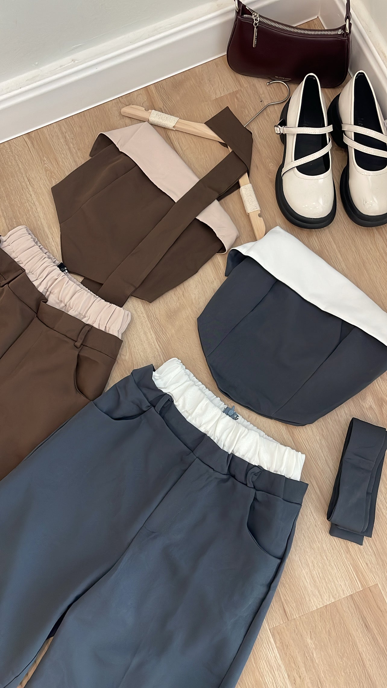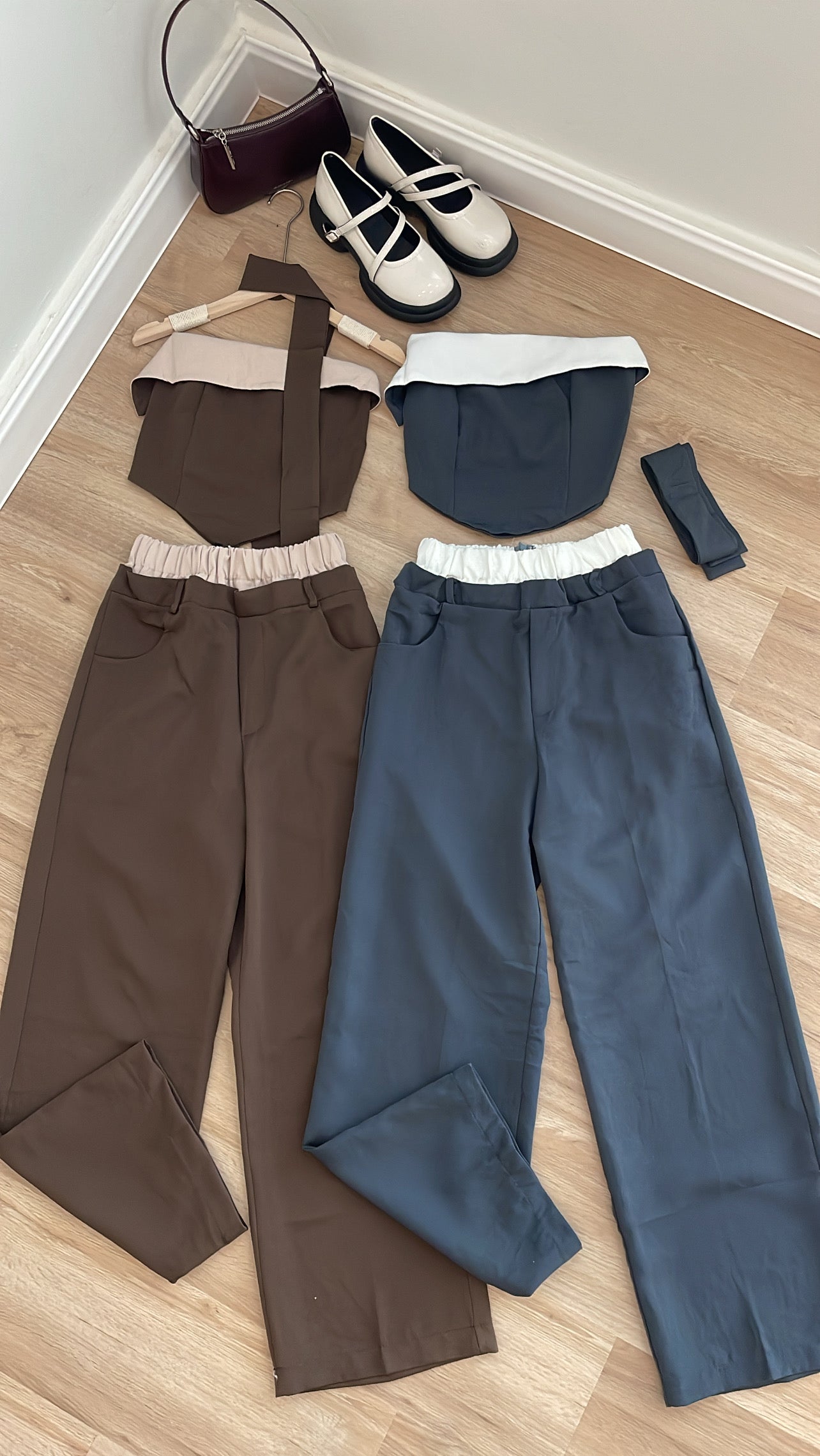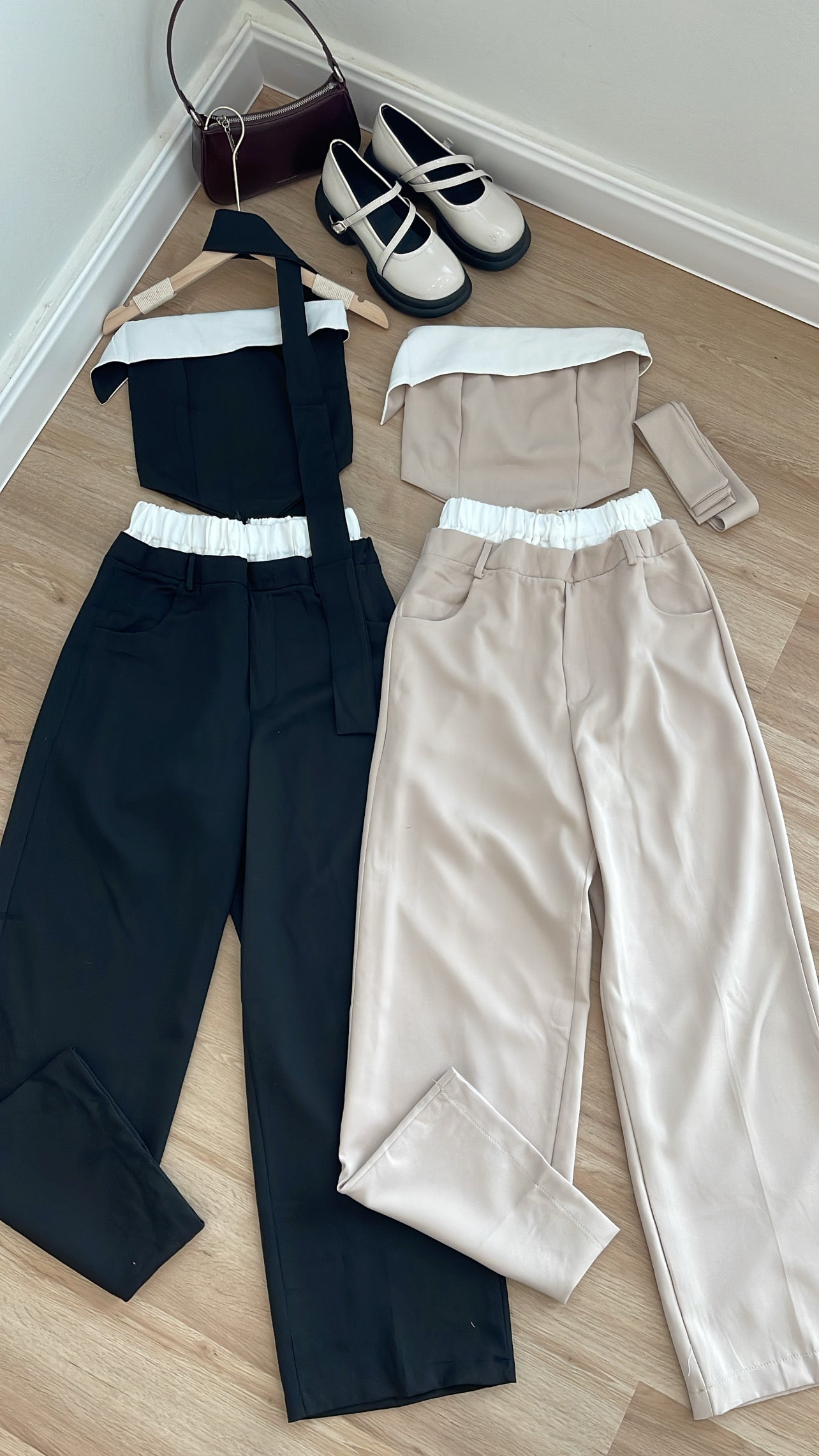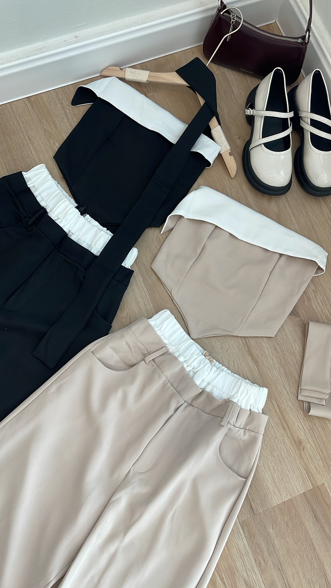 【特价】T118-撞色西装套装 抹胸上衣+高腰长裤