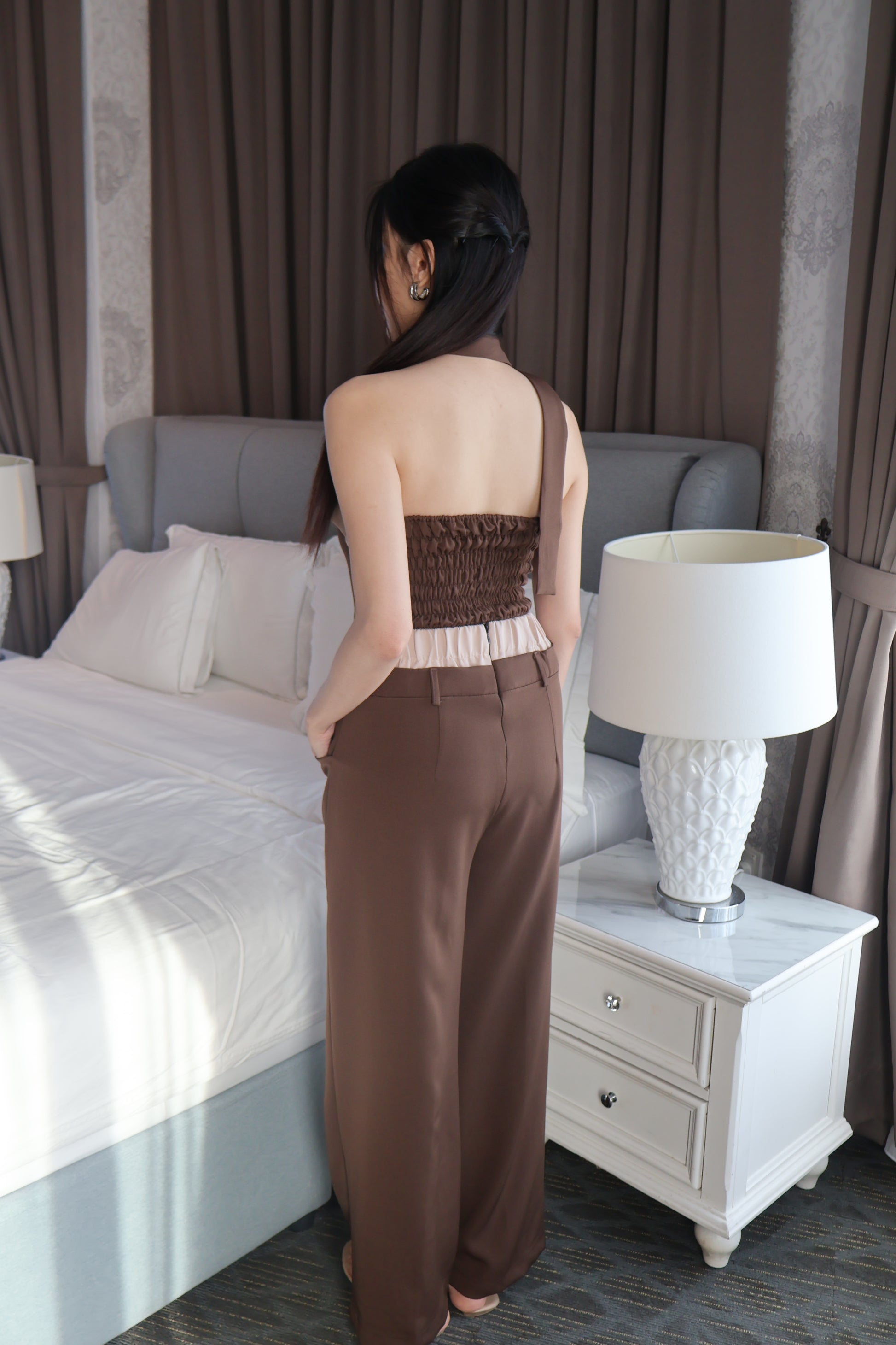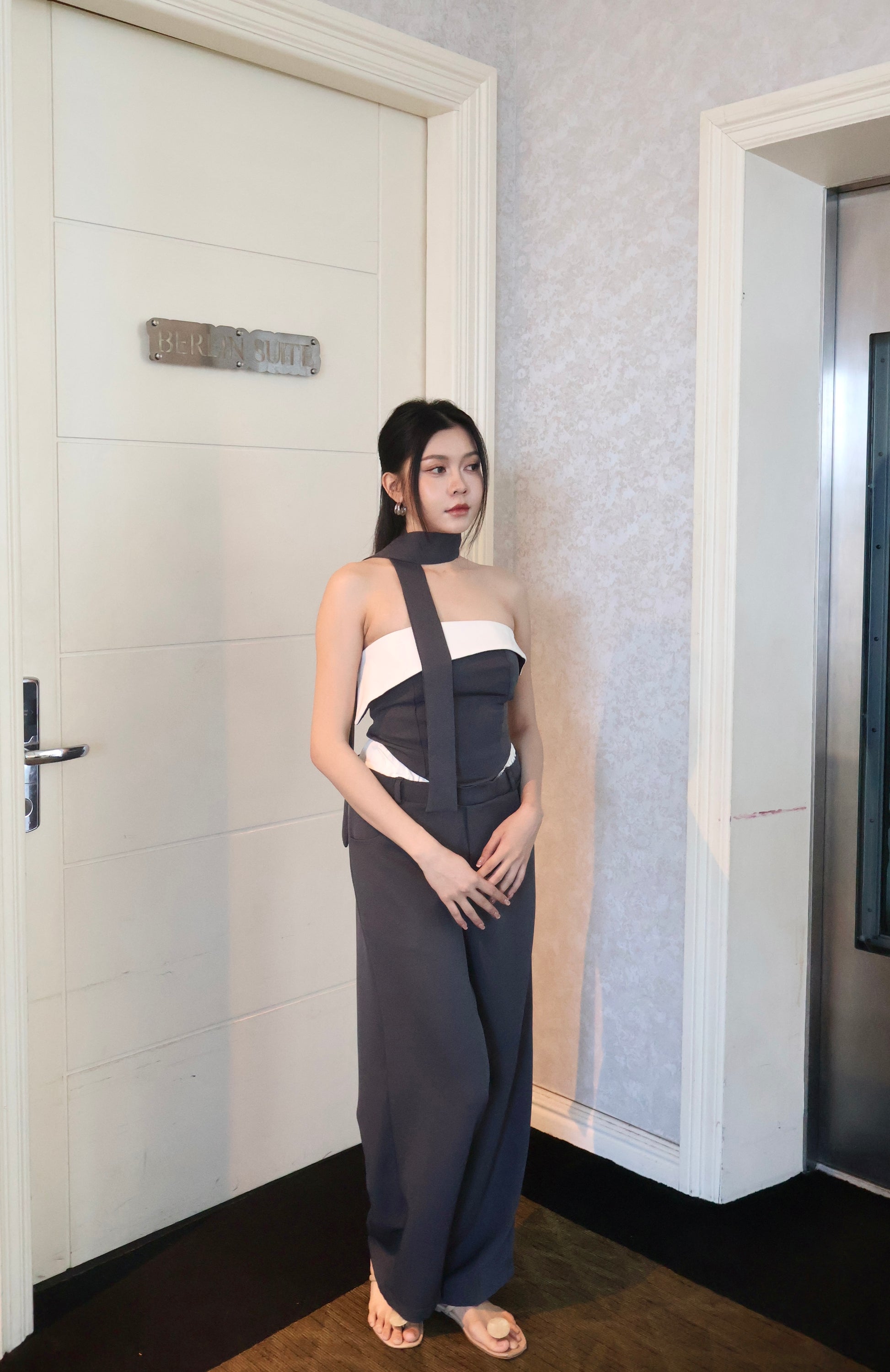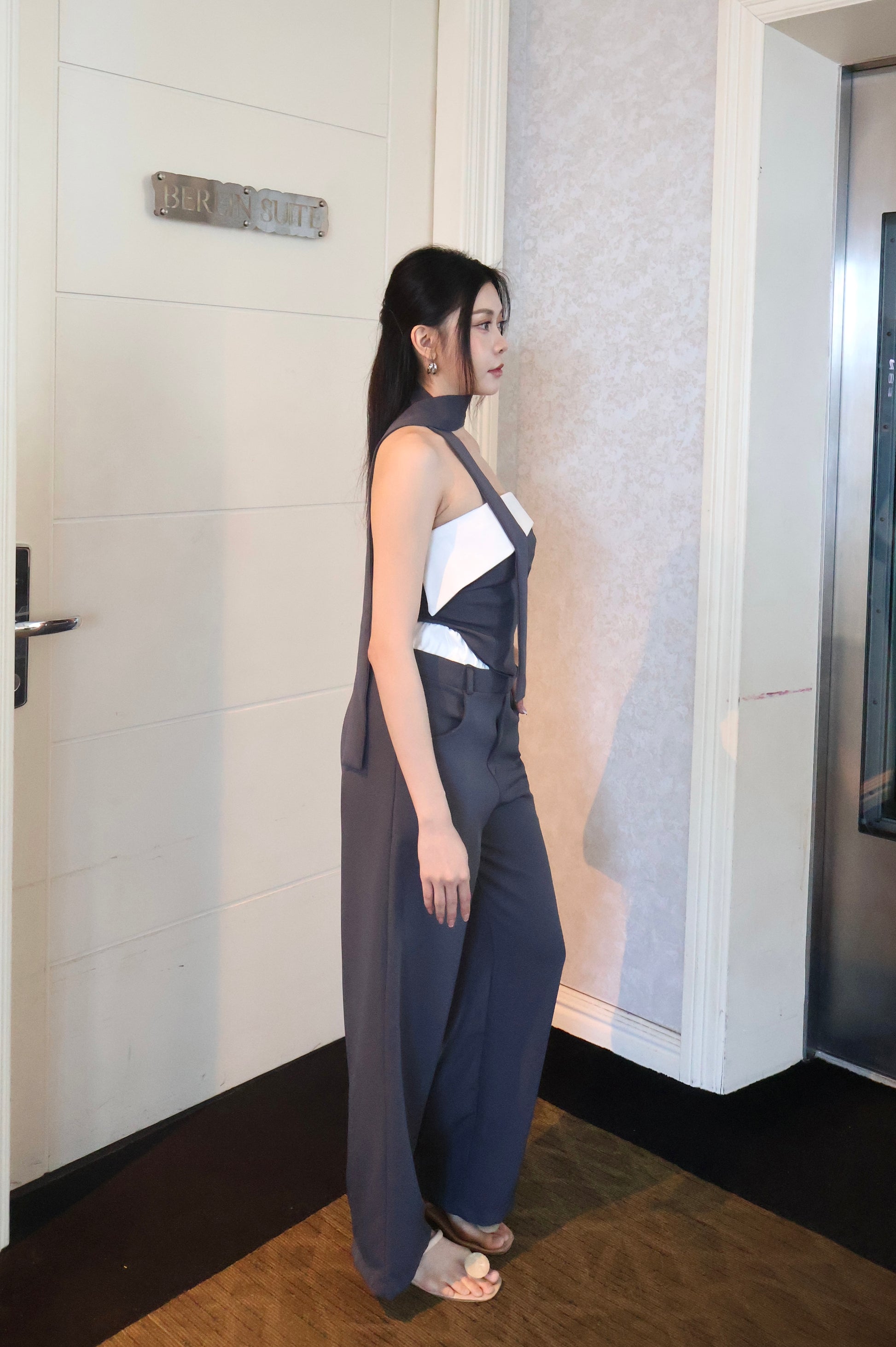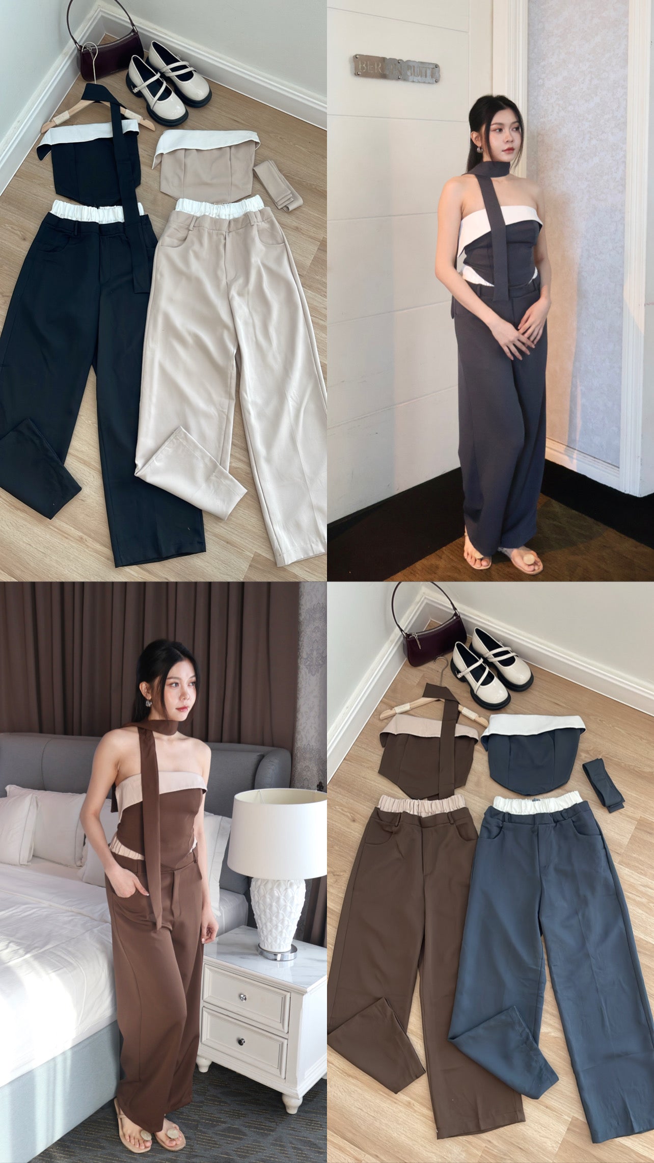 【特价】T118-撞色西装套装 抹胸上衣+高腰长裤