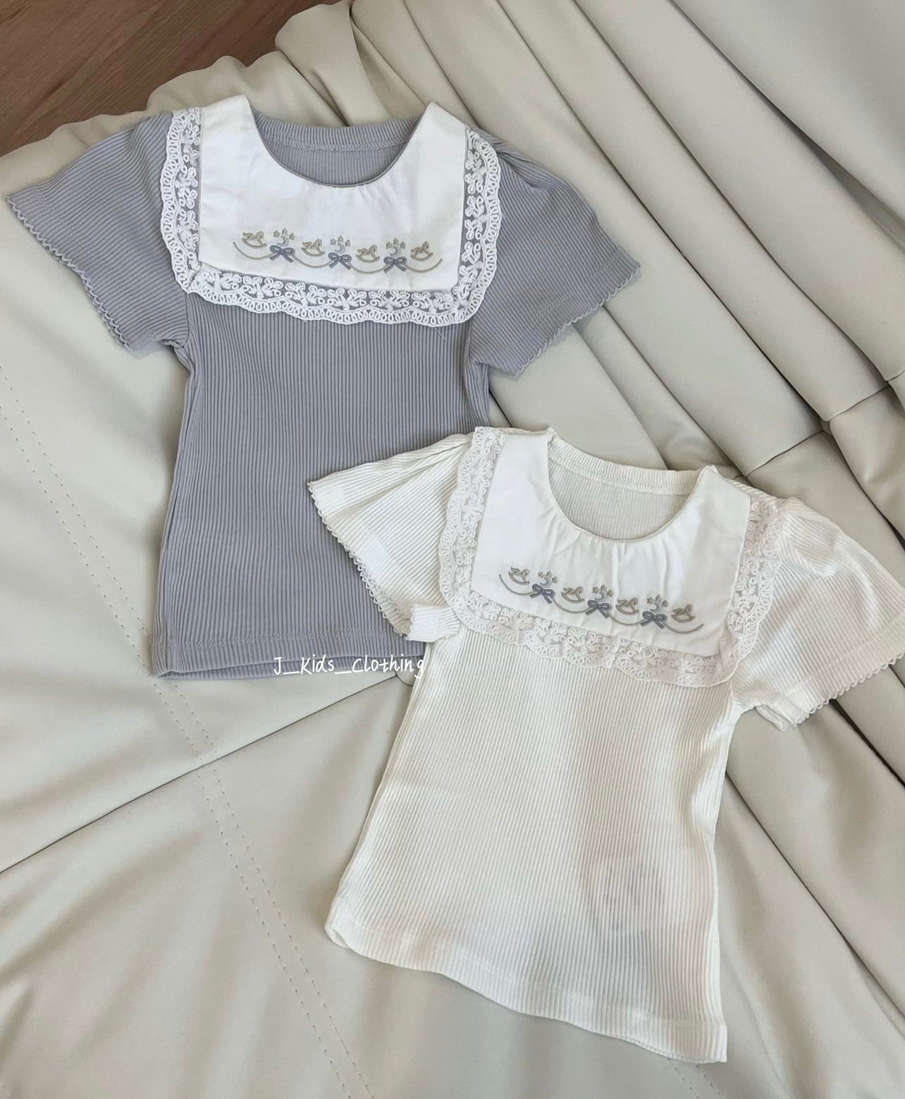 J109 小木马假领子短袖上衣