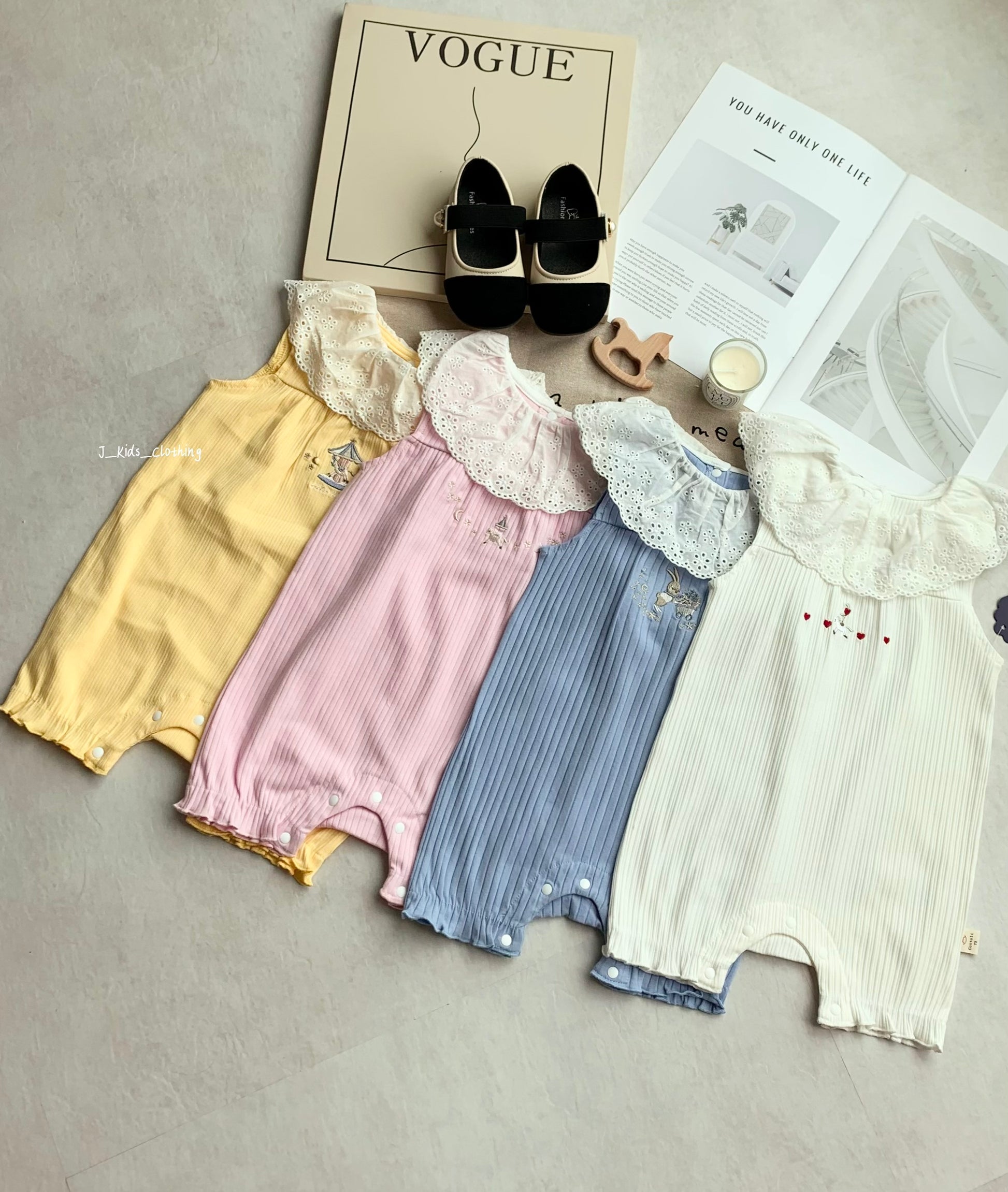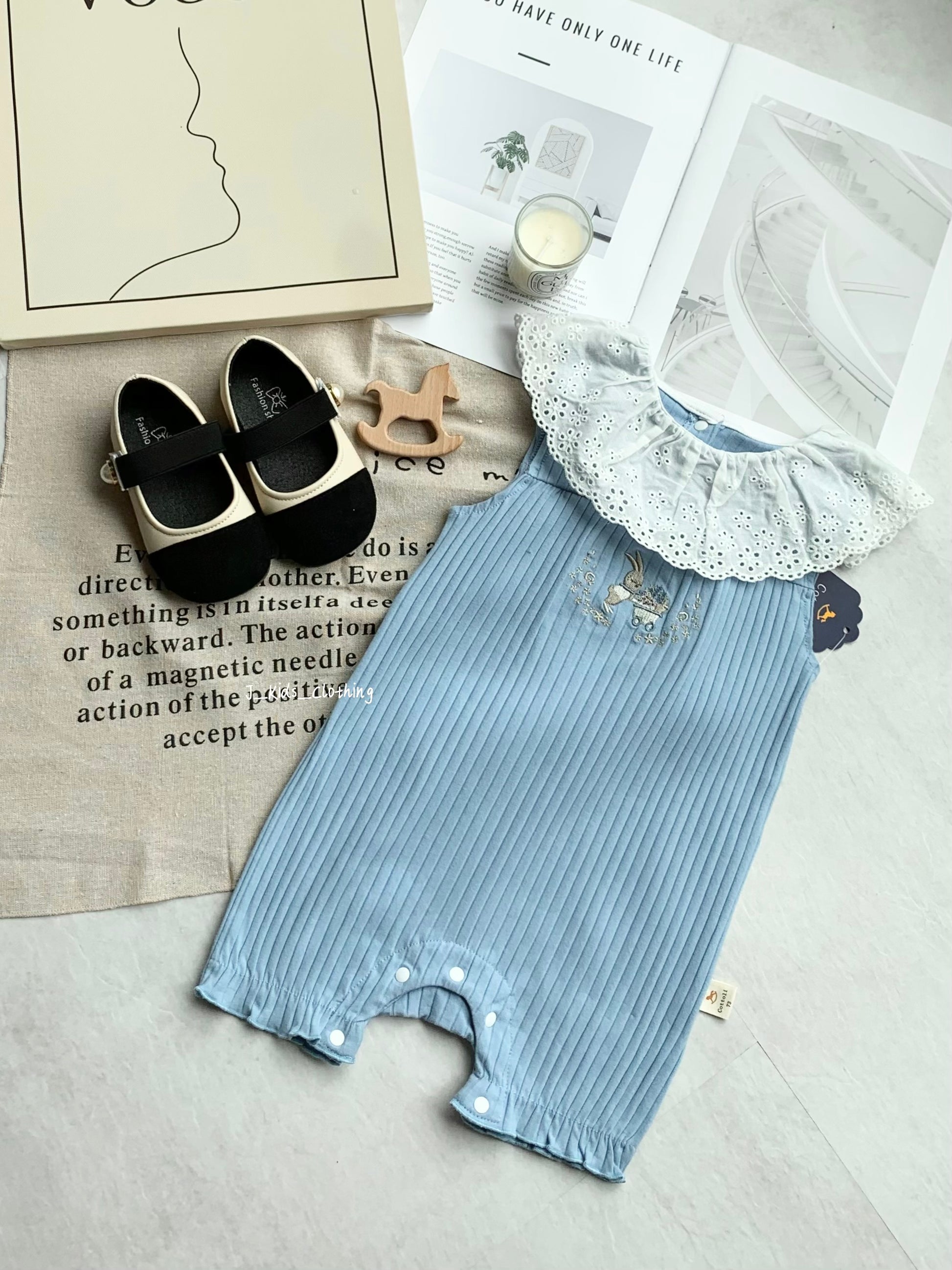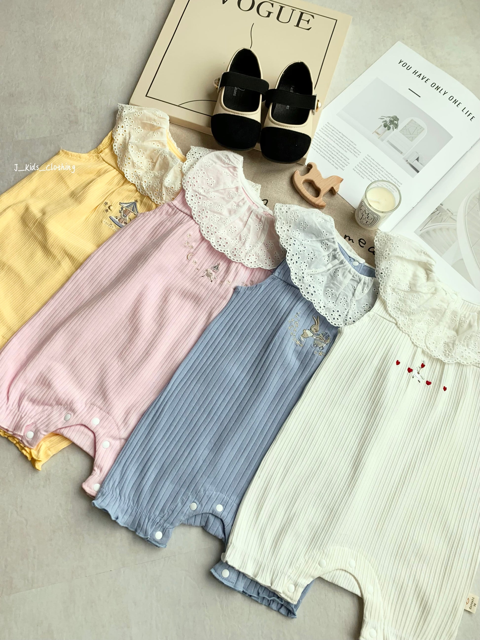 螺纹坑条面料|好美的一款😍蓝色是彼得兔刺绣 其余都是小木马刺绣 很梦幻 花边领部位无需担心不够宽 也不需要担心会扎皮肤 后面有纽扣 🉑️随意解开