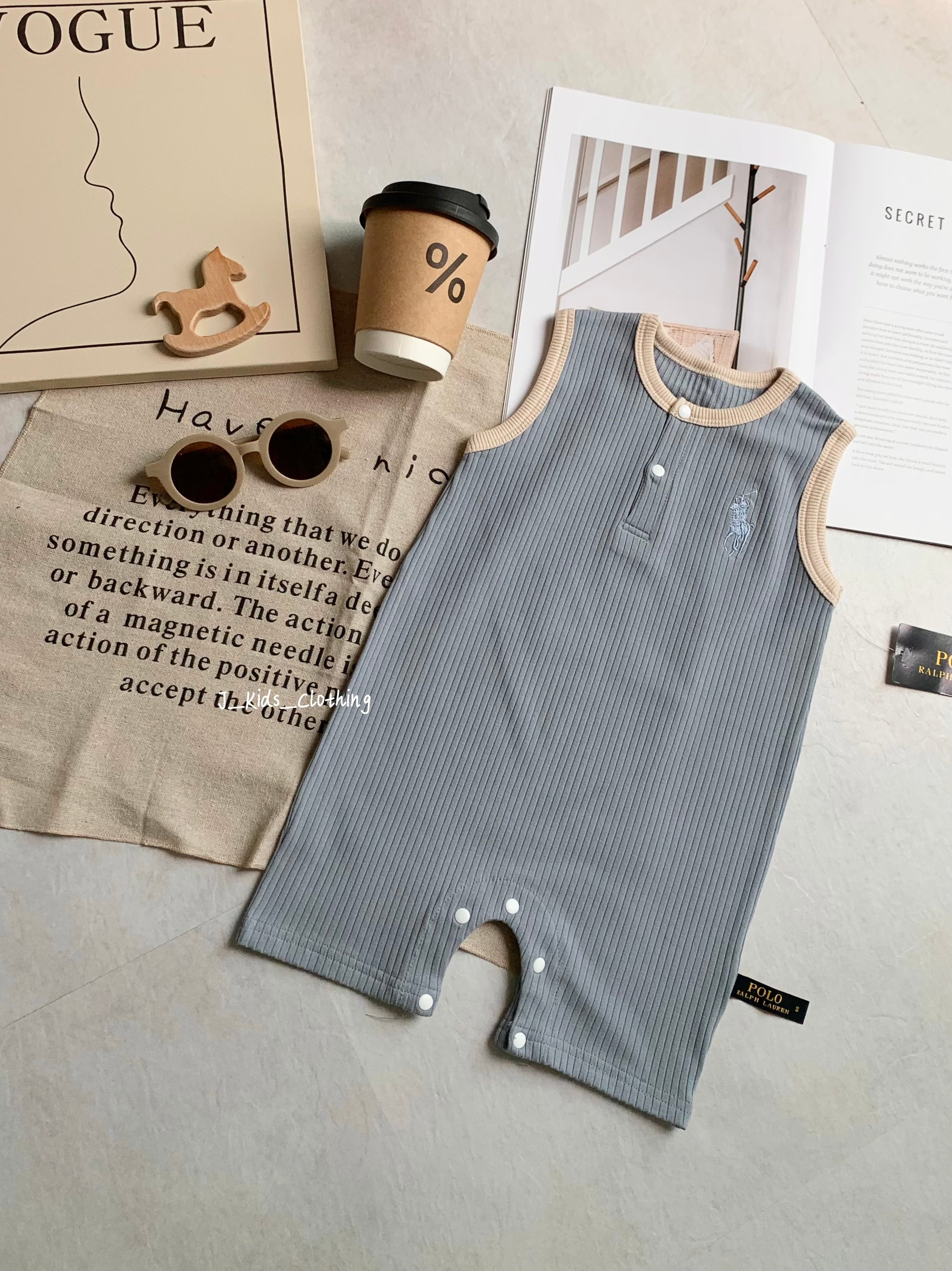 J451 撞色刺绣拉夫背心平爬