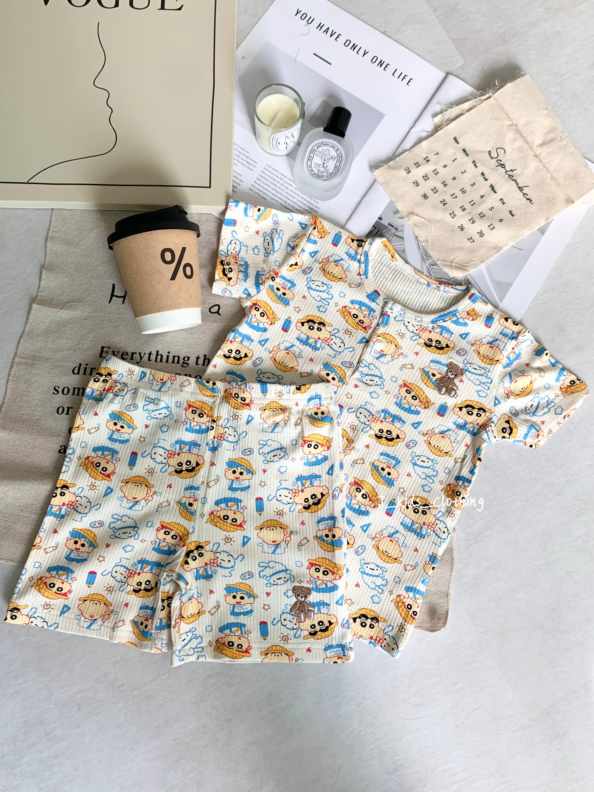 蜡笔小新/丑鱼 坑条面料▶️会厚一些 我选的花色较中性 男女宝都🉑️