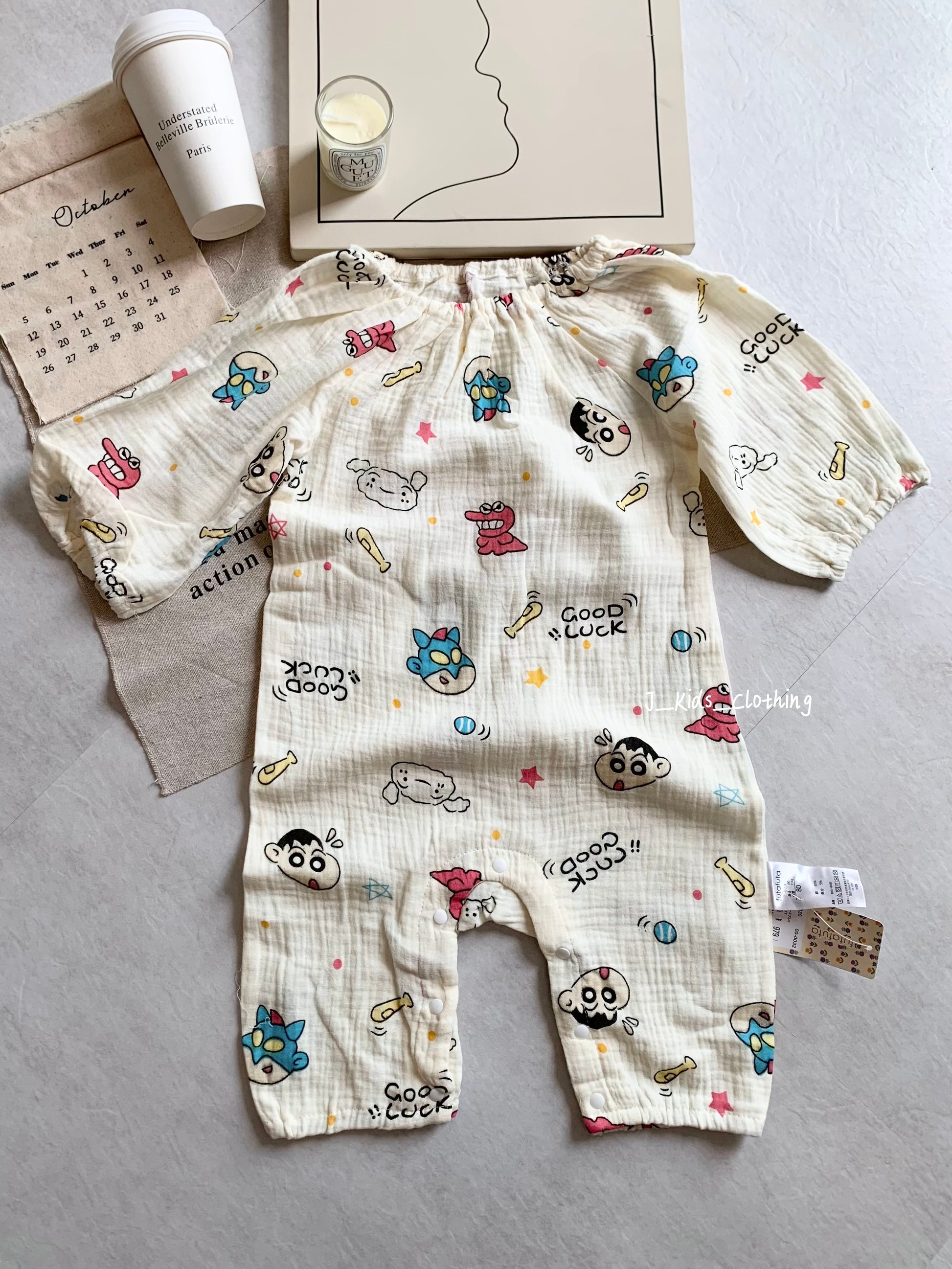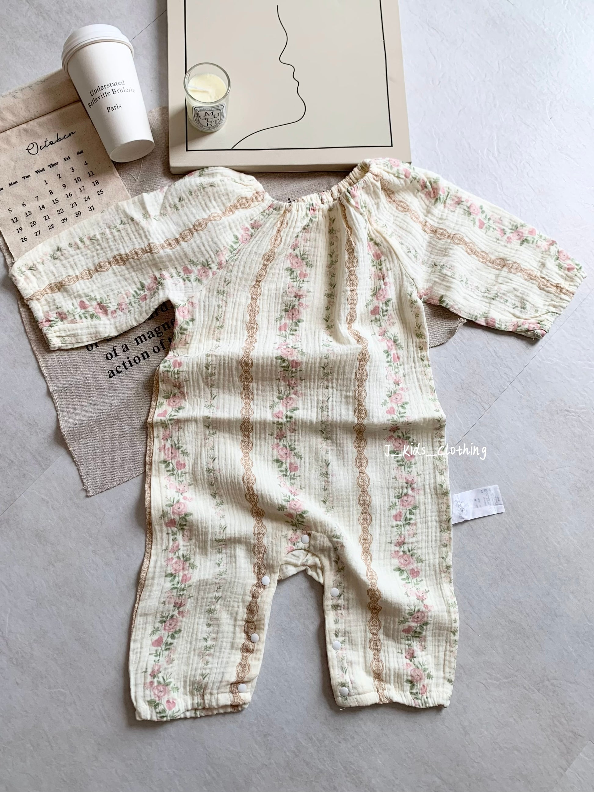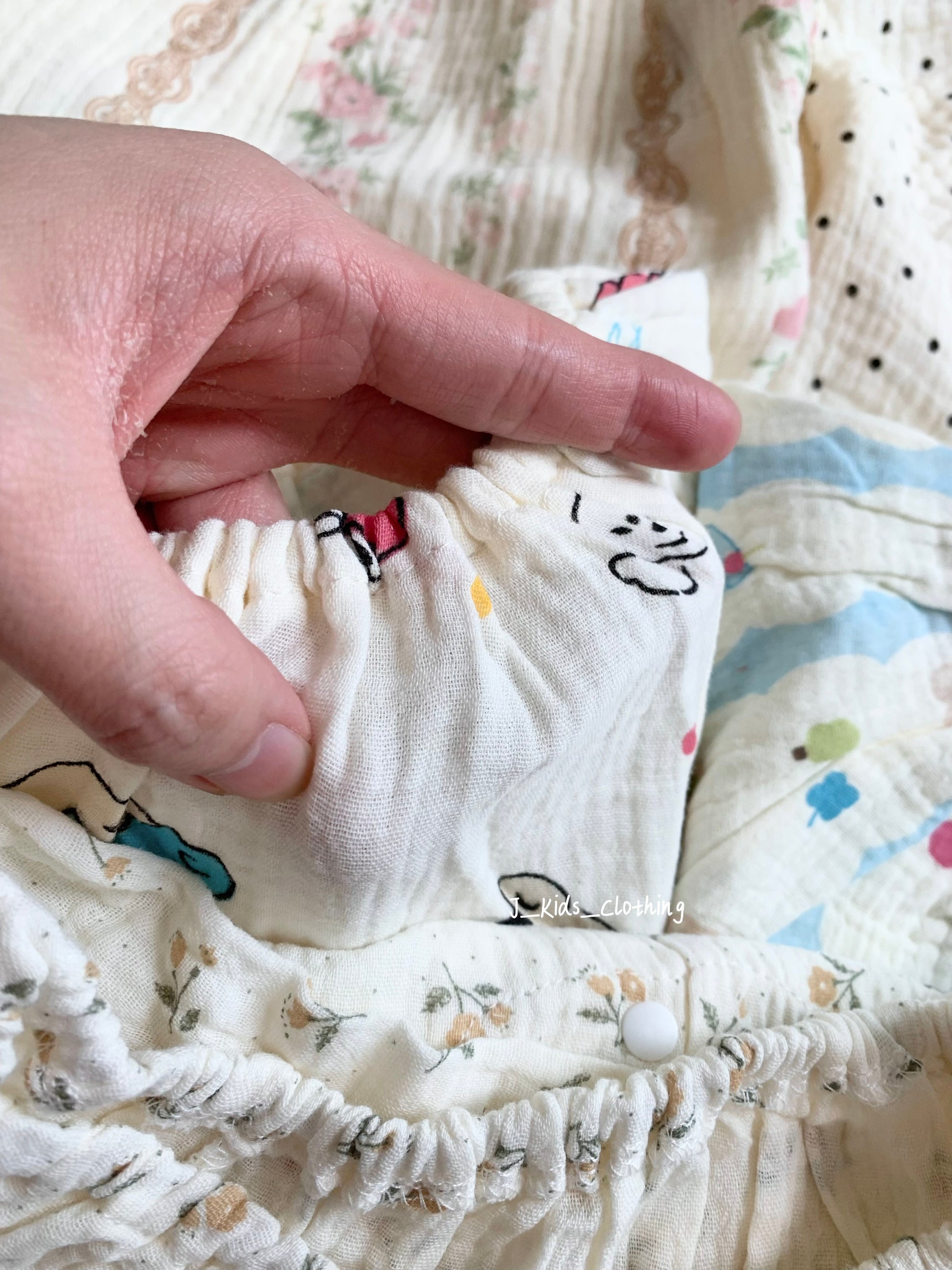 棉纱面料|适合没吹冷气的宝宝穿 圆领部位带松紧