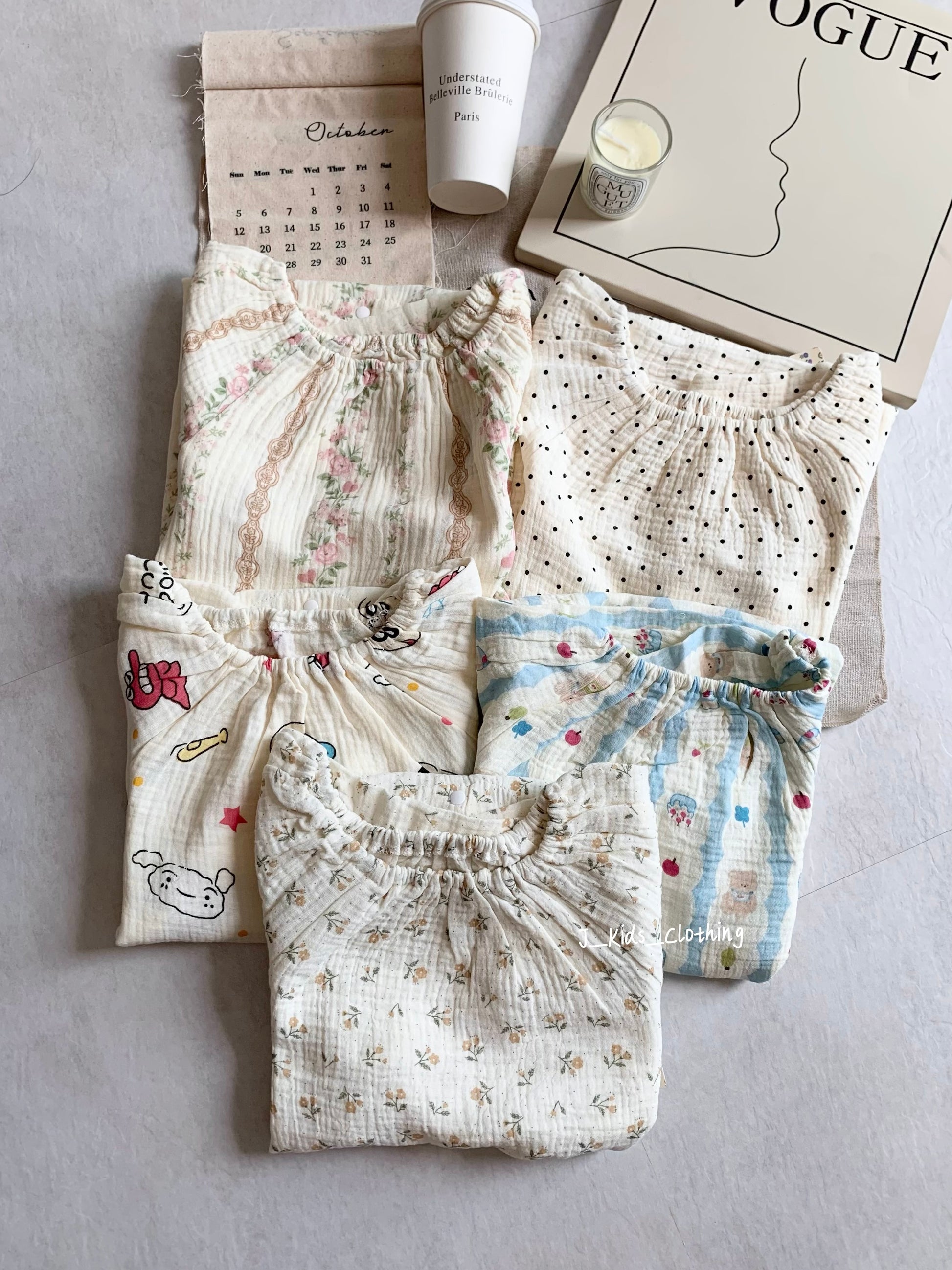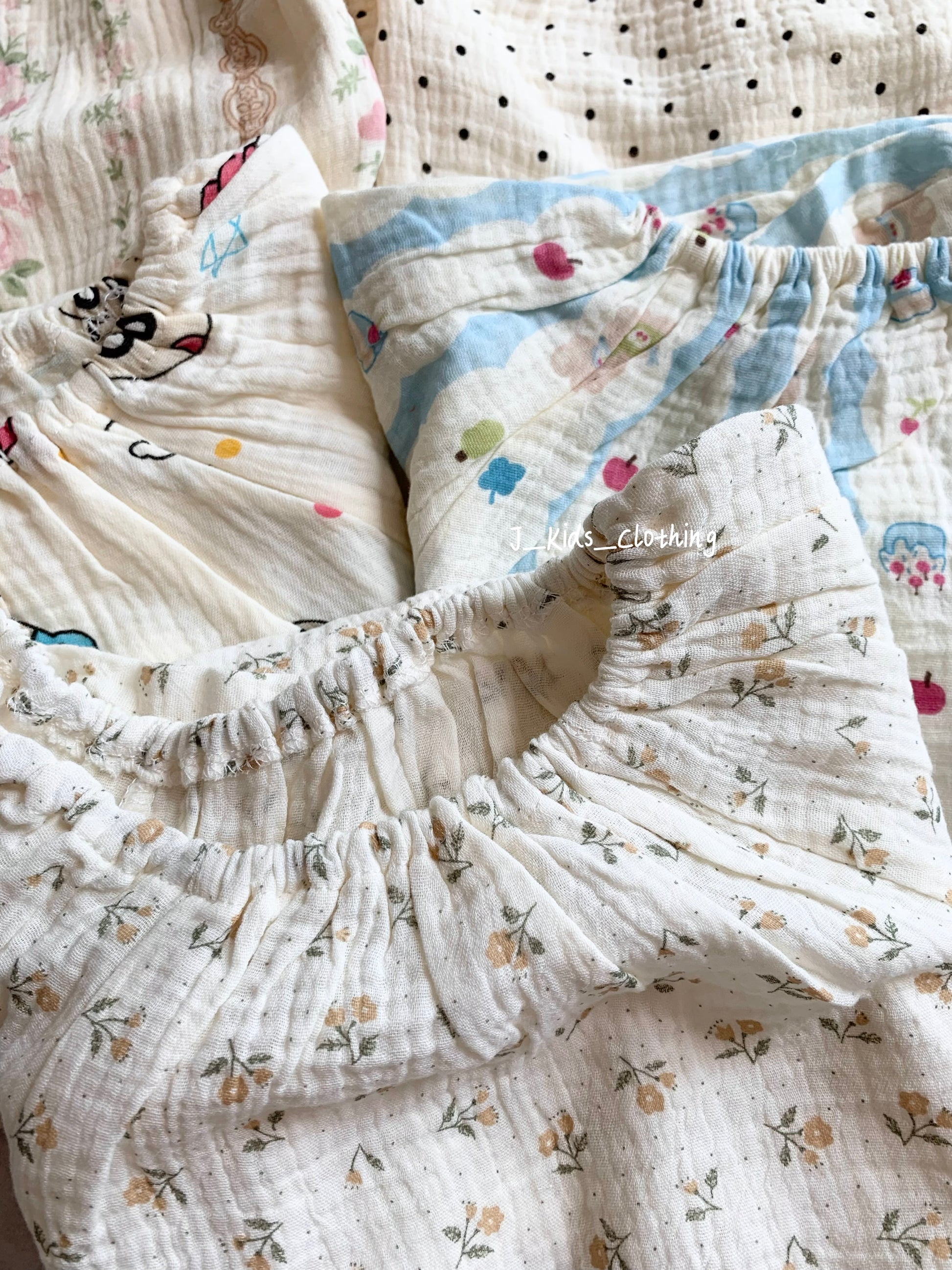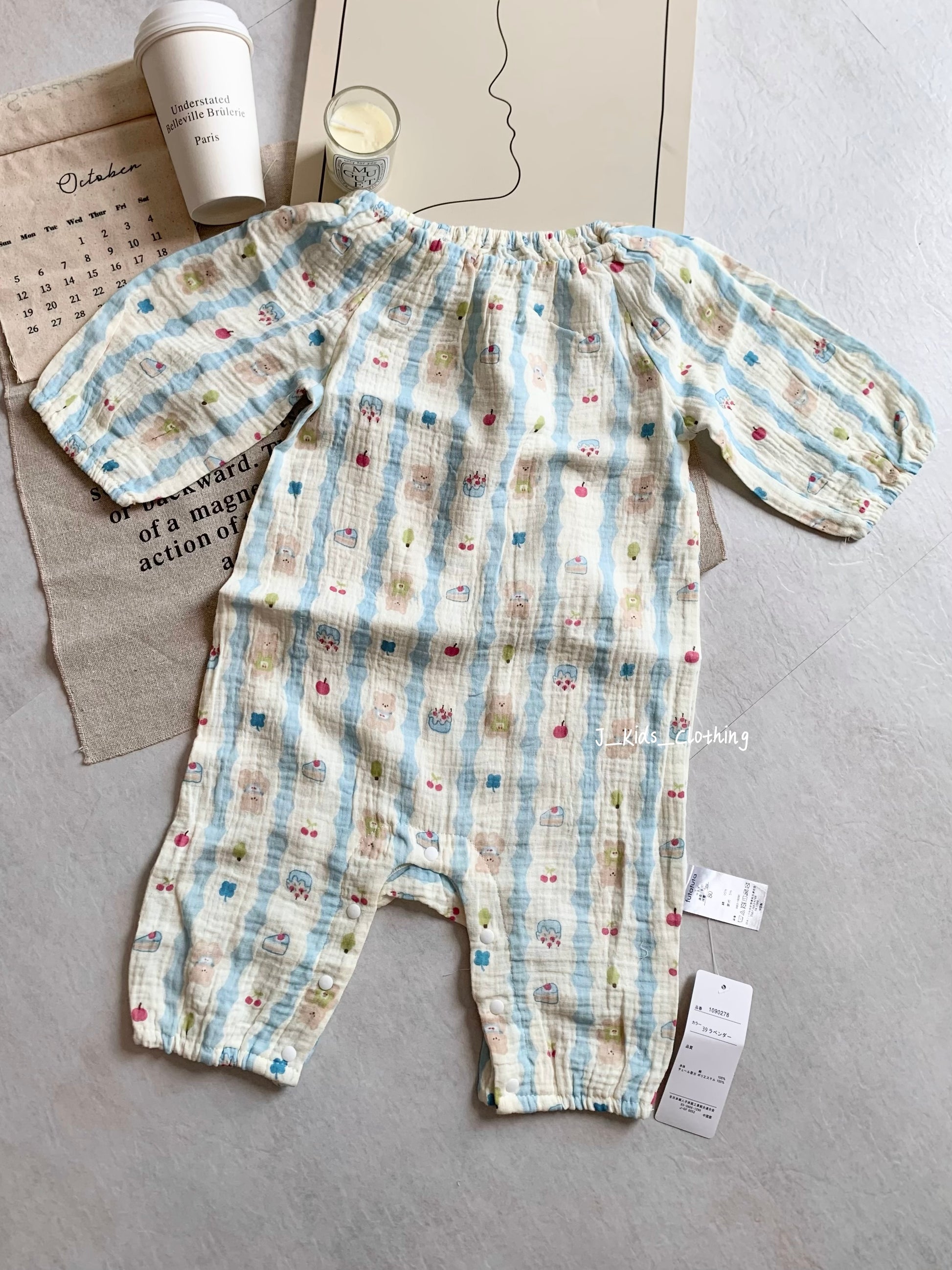 棉纱面料|适合没吹冷气的宝宝穿 圆领部位带松紧