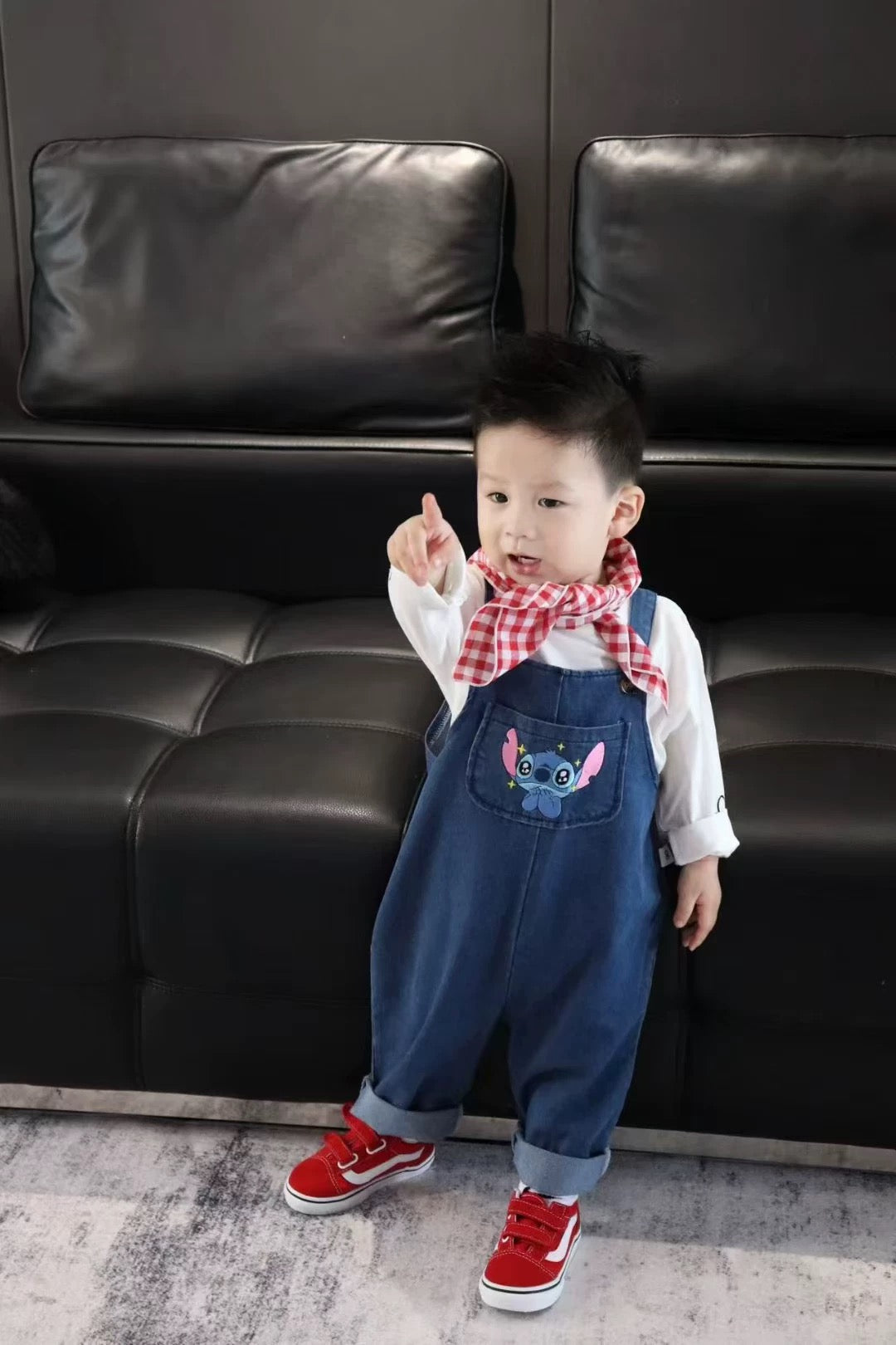 牛仔面料|内里🉑搭配短袖 或 背心上衣 两粒扣🉑调节长短 推荐男宝或喜欢中性款的女宝都可以入手哦